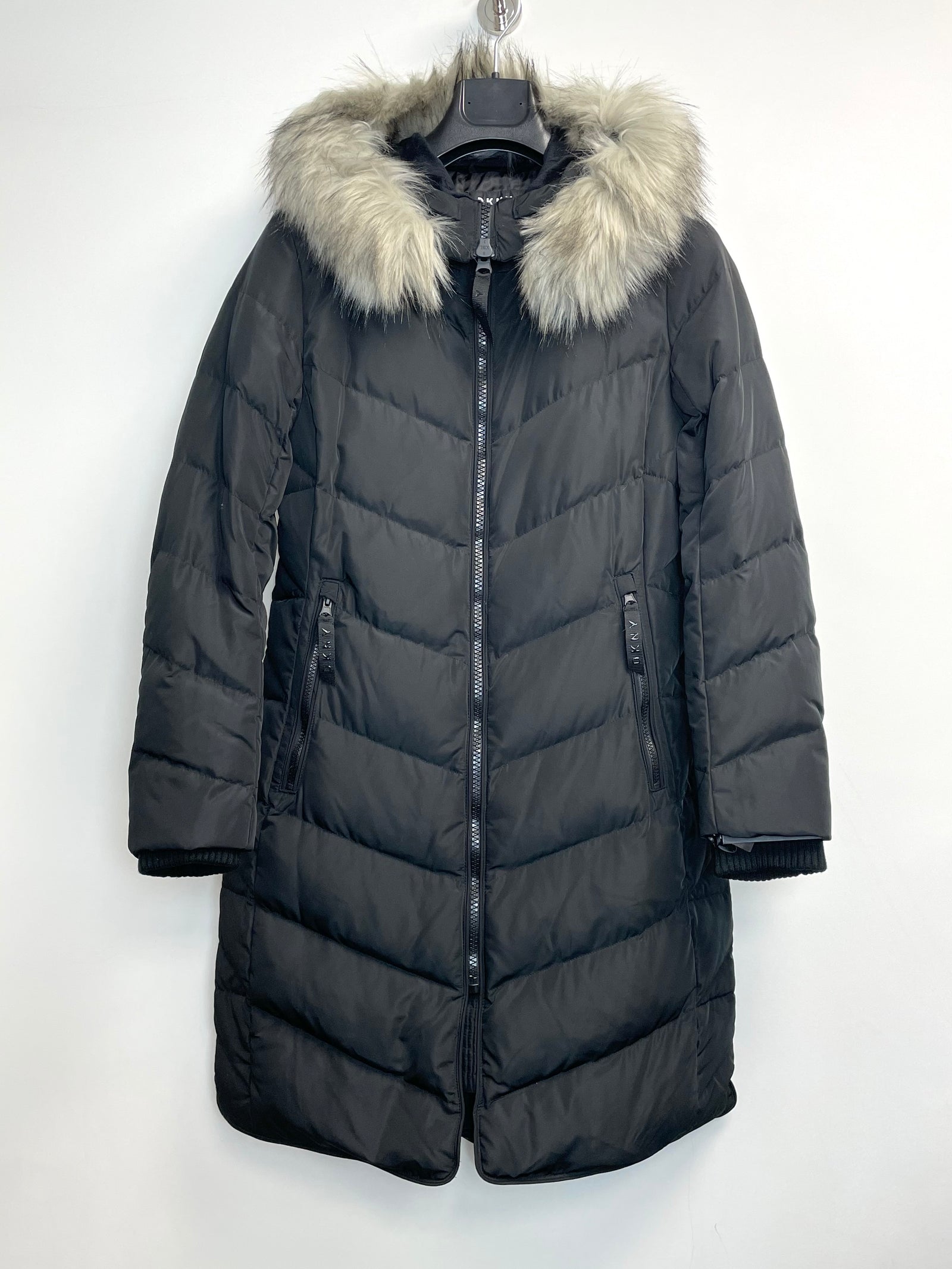 DKNY Women’s faux fur Eddie Bauer Lodge Down Coat Black