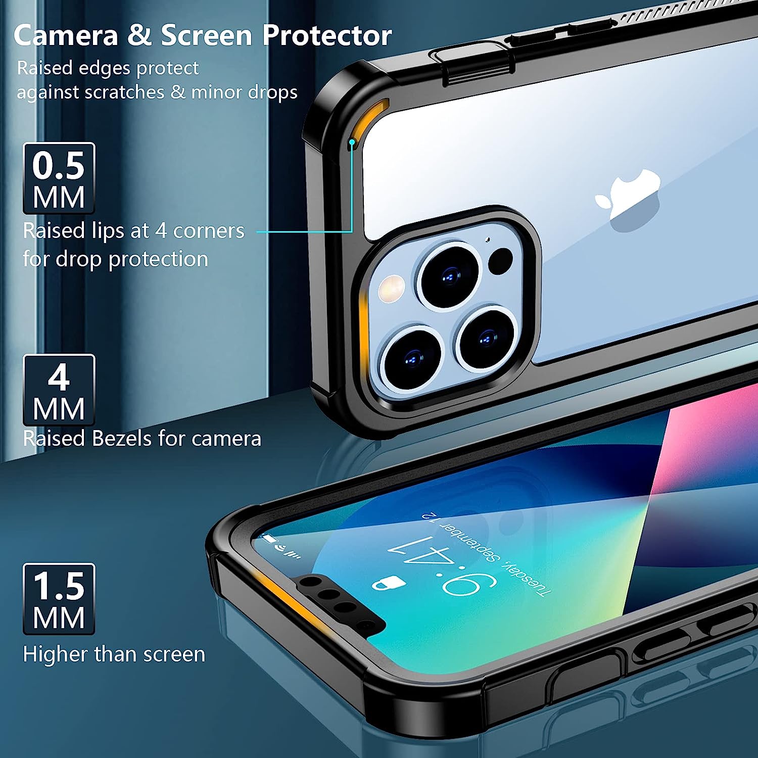 Singdo Compatible with iPhone 13 Pro Case, Full Body Rugged Case with Built-in Screen Protector Shockproof Heavy Duty Protection Slim Fit Cover for iPhone 13 Pro 6.1 Inch (Black/Clear).