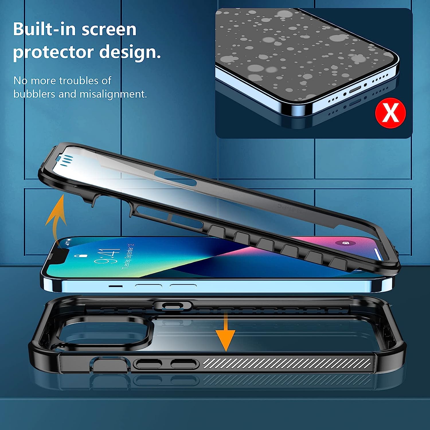 Singdo iPhone 13 Pro Slim Rugged Case with Built-in Screen Protector - Military-Grade Shockproof