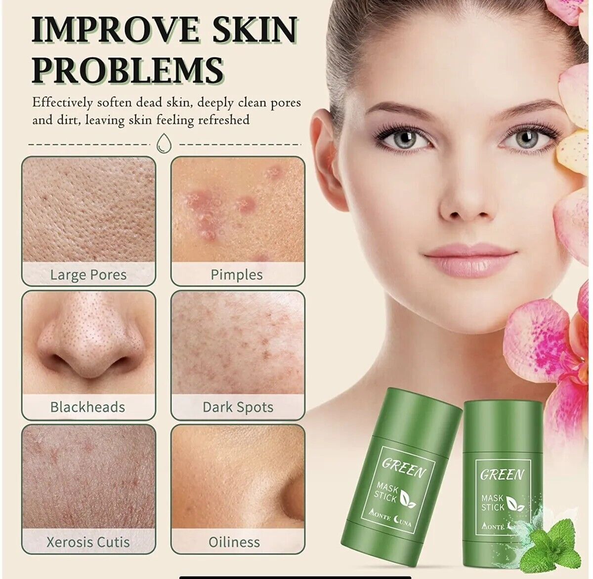 2 Pack Green Tea Mask Stick Facial Cleansing Oil Acne Blackhead Control Deep Clean Pore