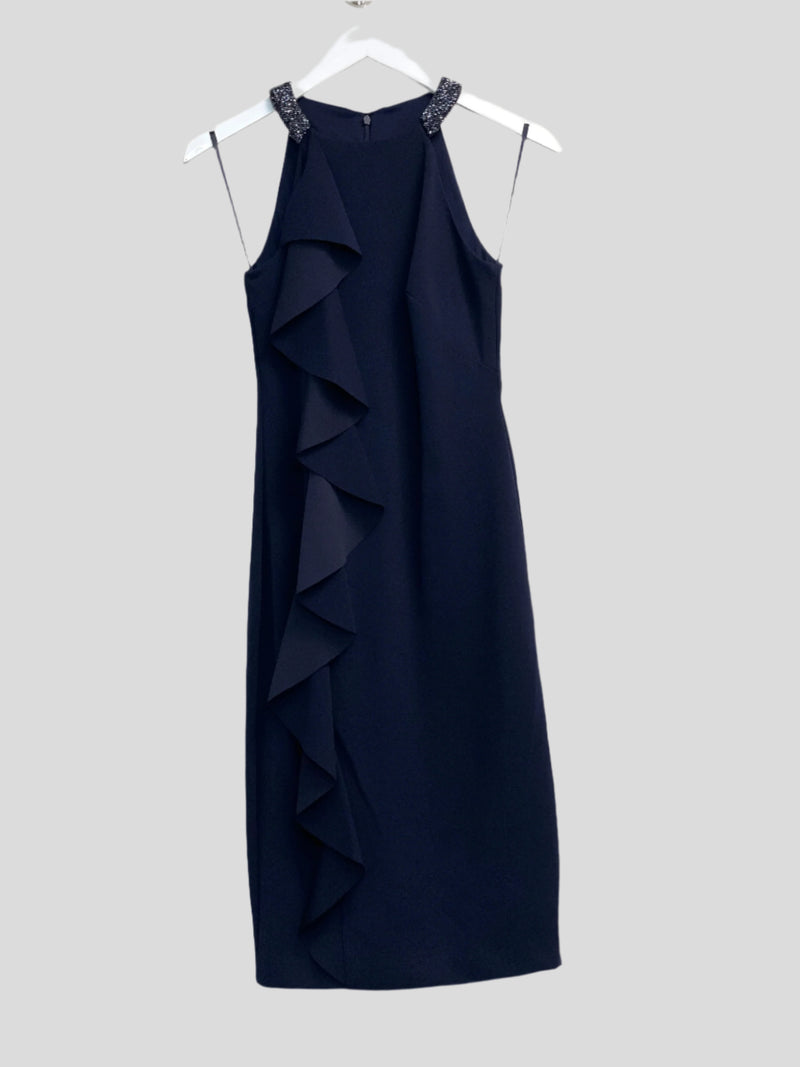 Lauren Ralph Lauren Beaded Ruffled Sleeveless Cocktail Dress