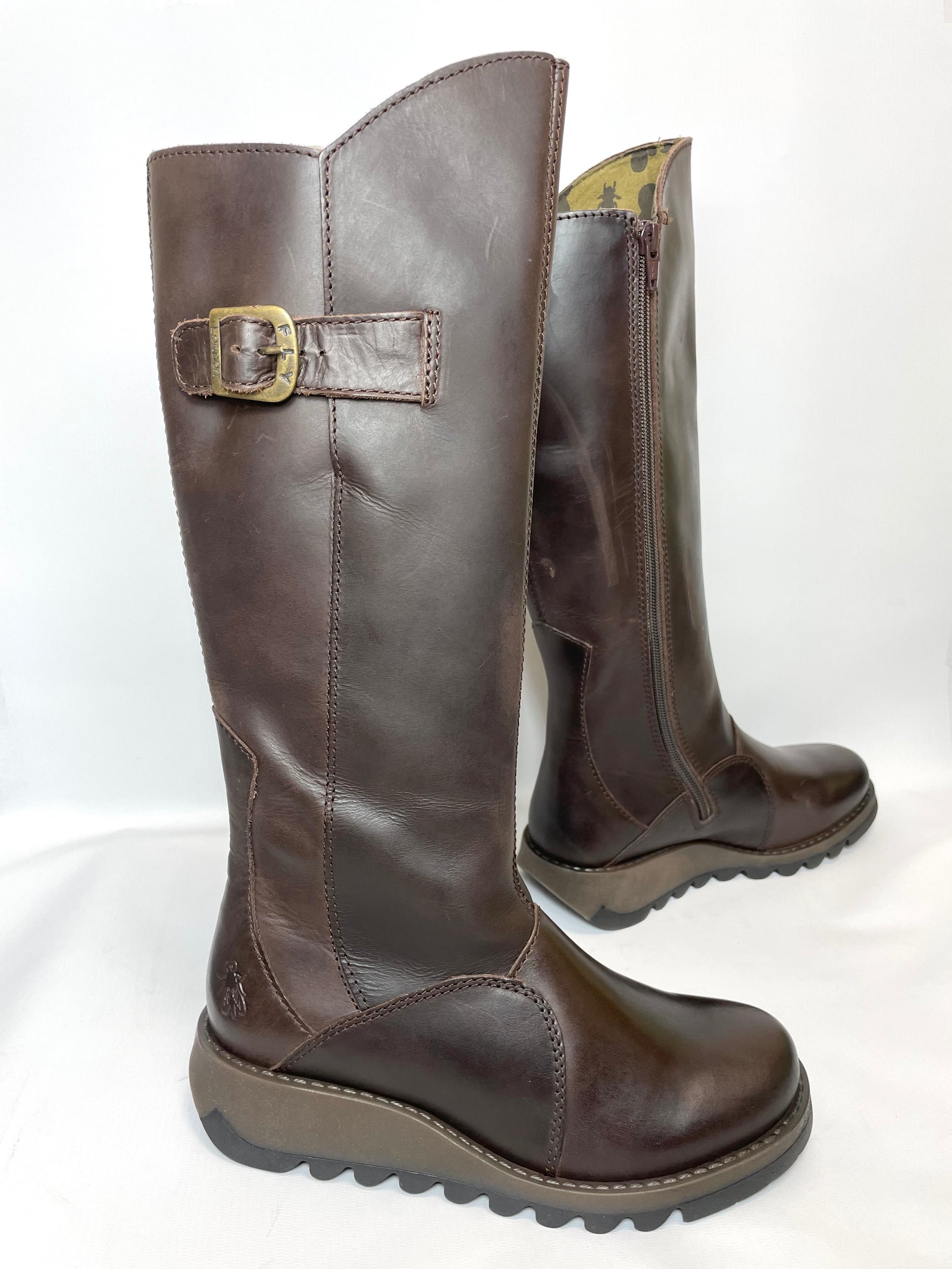 Fly London Mol 2 Wedge Zip Up Womens Knee High Boots Brown