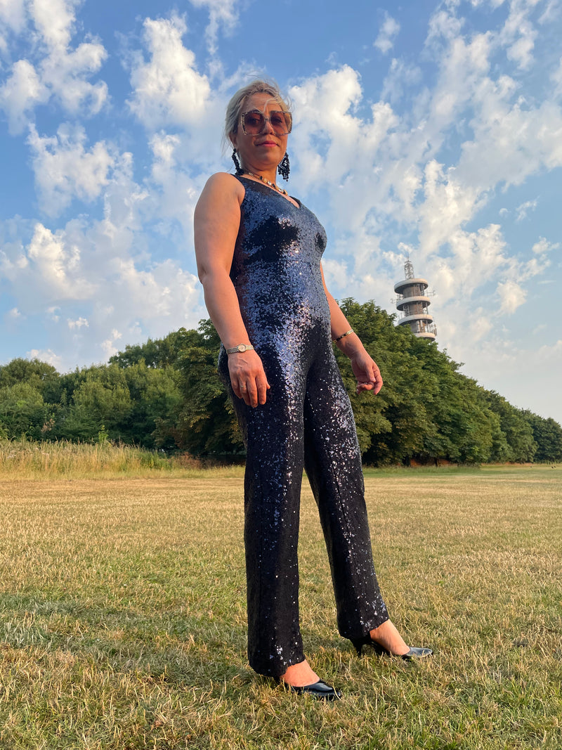 Nightway Women’s Sparkly Sequin Jumpsuit Navy