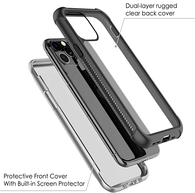 SPIDER CASE COMPATIBLE WITH IPHONE 11 PRO CASE FULL BODY PROTECTION WITH BUILT-IN SCREEN PROTECTOR, HEAVY DUTY SHOCKPROOF DROP-PROOF CASE FOR IPHONE 11 PRO 5.8 INCH BLACK/CLEAR.