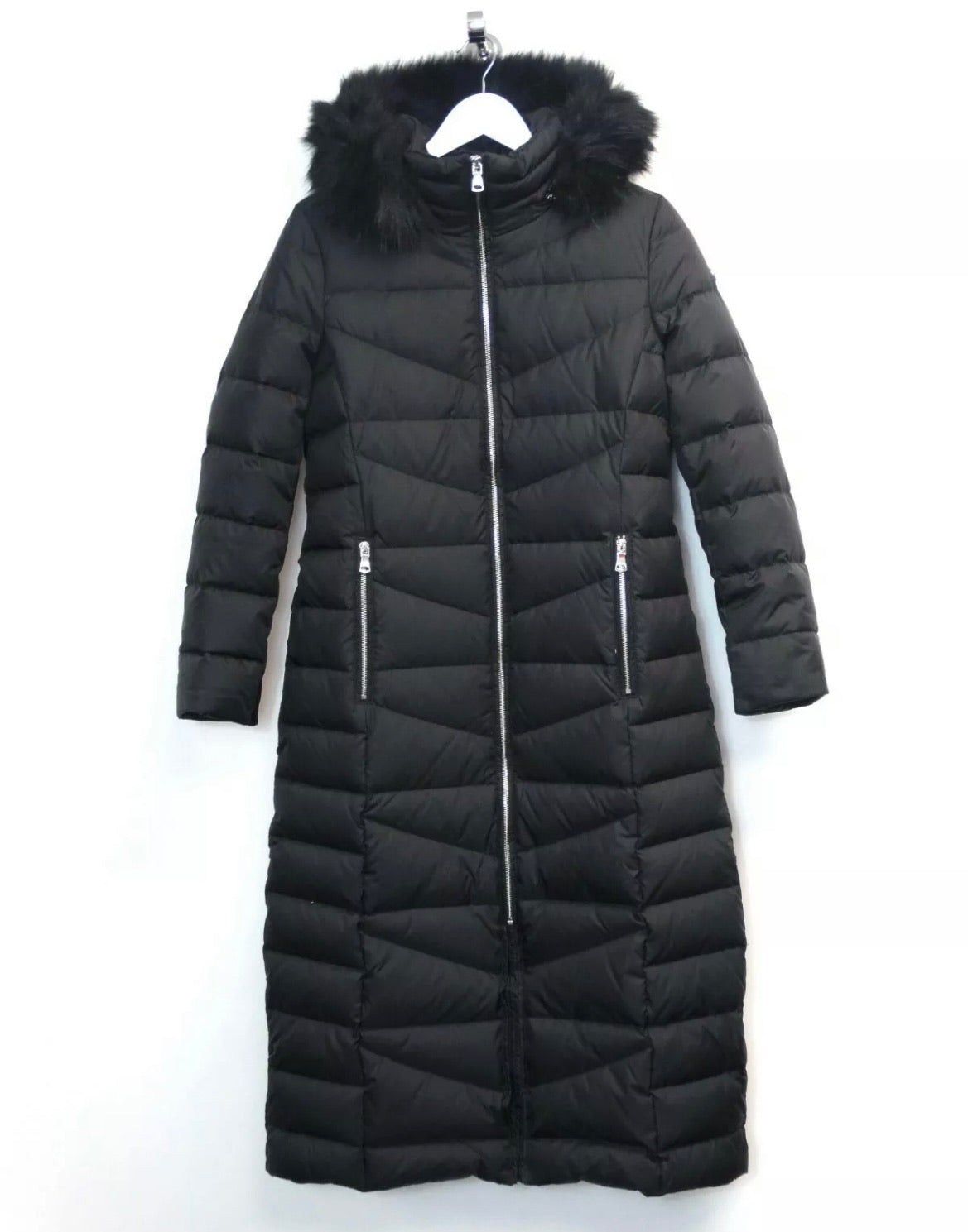 CK Women’s Long Maxi Faux Fur Hood Down Coat Black
