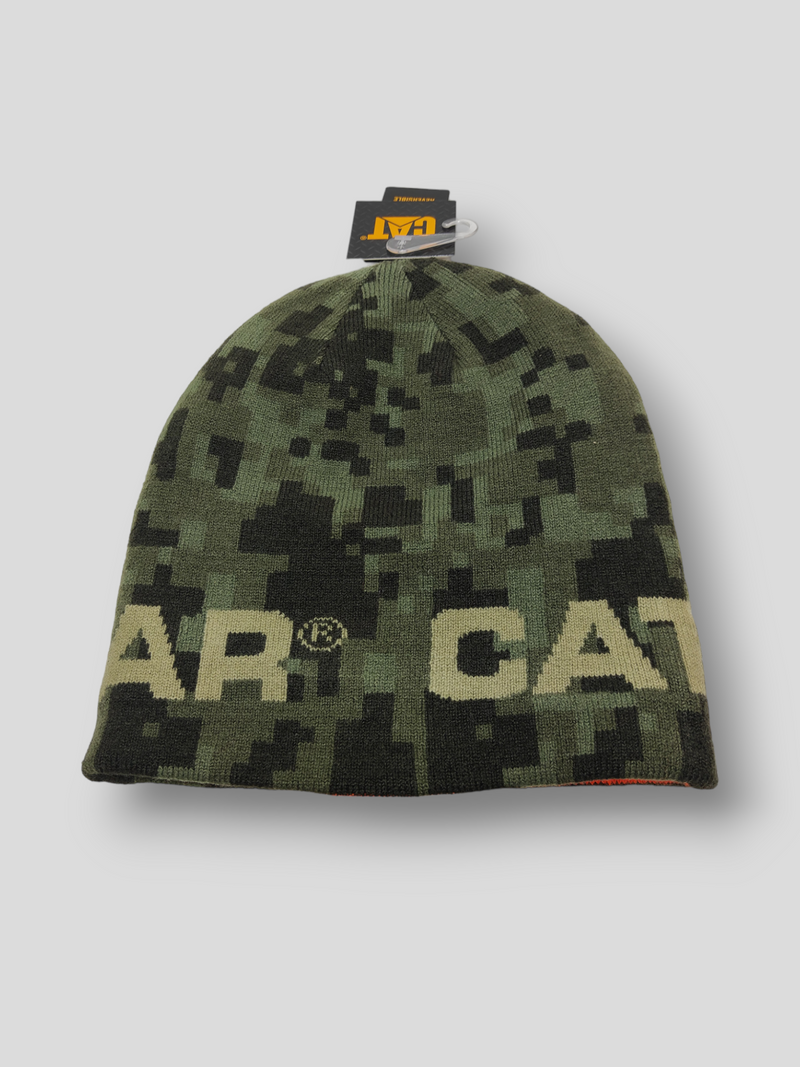 Cat Reversible Logo Beanie Hat Camo Unisex Green/Orange