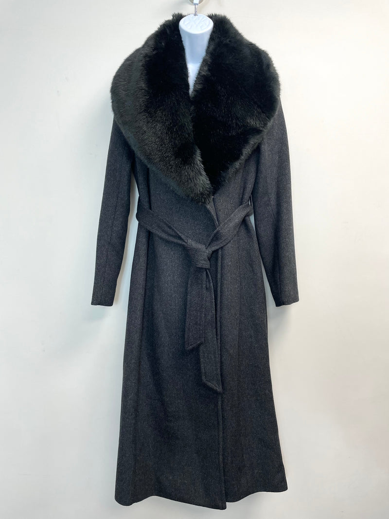 Cole Haan Faux Fur Collar Women’s Trench Coat Dark Grey