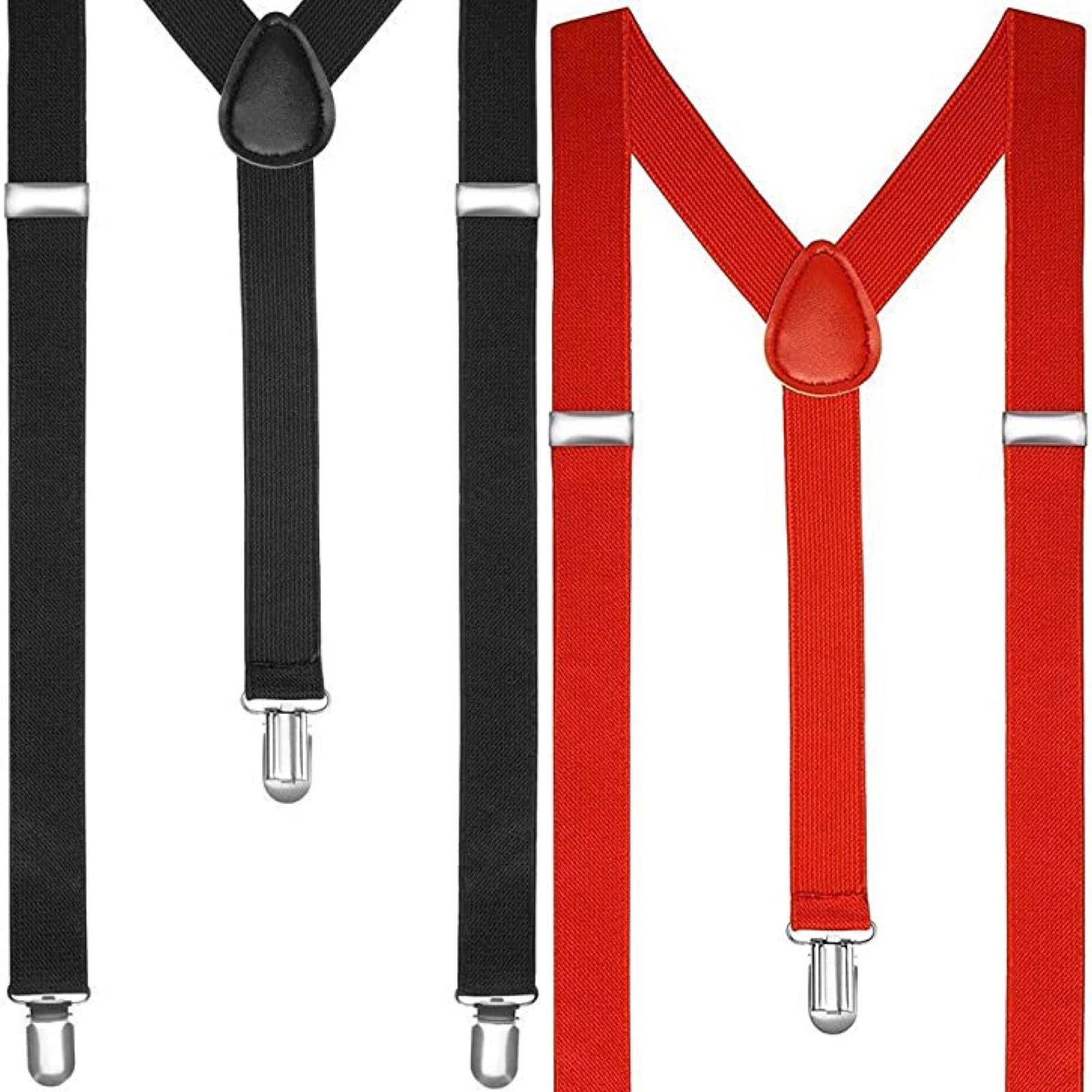 2pc Gangster Braces/Suspenders One Size Fully Adjustable in Red/Black