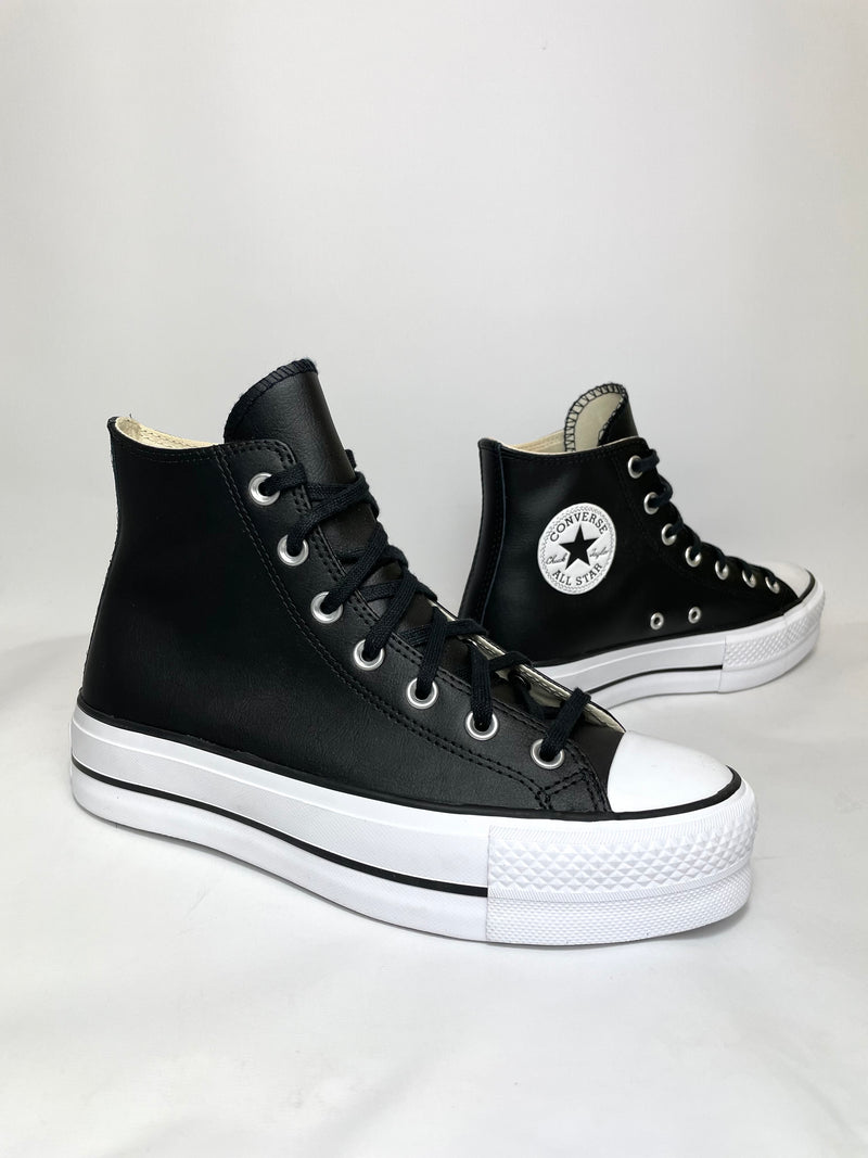 Converse Chuck Taylor All Star Platform Leather High-Top Womens Trainers Black/White