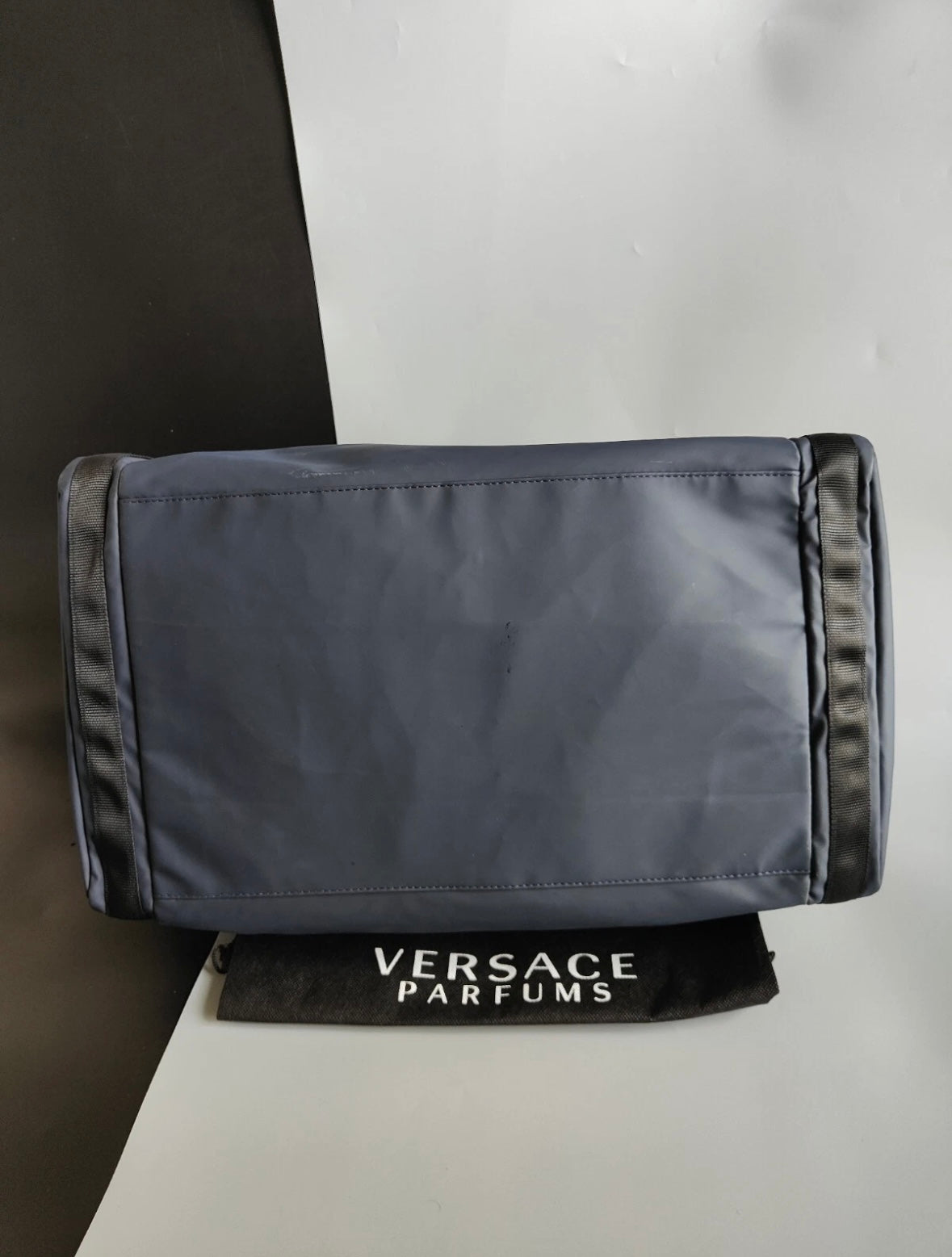 Introducing the Versace Parfums Weekend Bag for men, perfect for all your travel needs. This stylish duffle bag is designed to make your travel hassle-free and comfortable. It is made from high-quality materials that ensure durability and longevity.