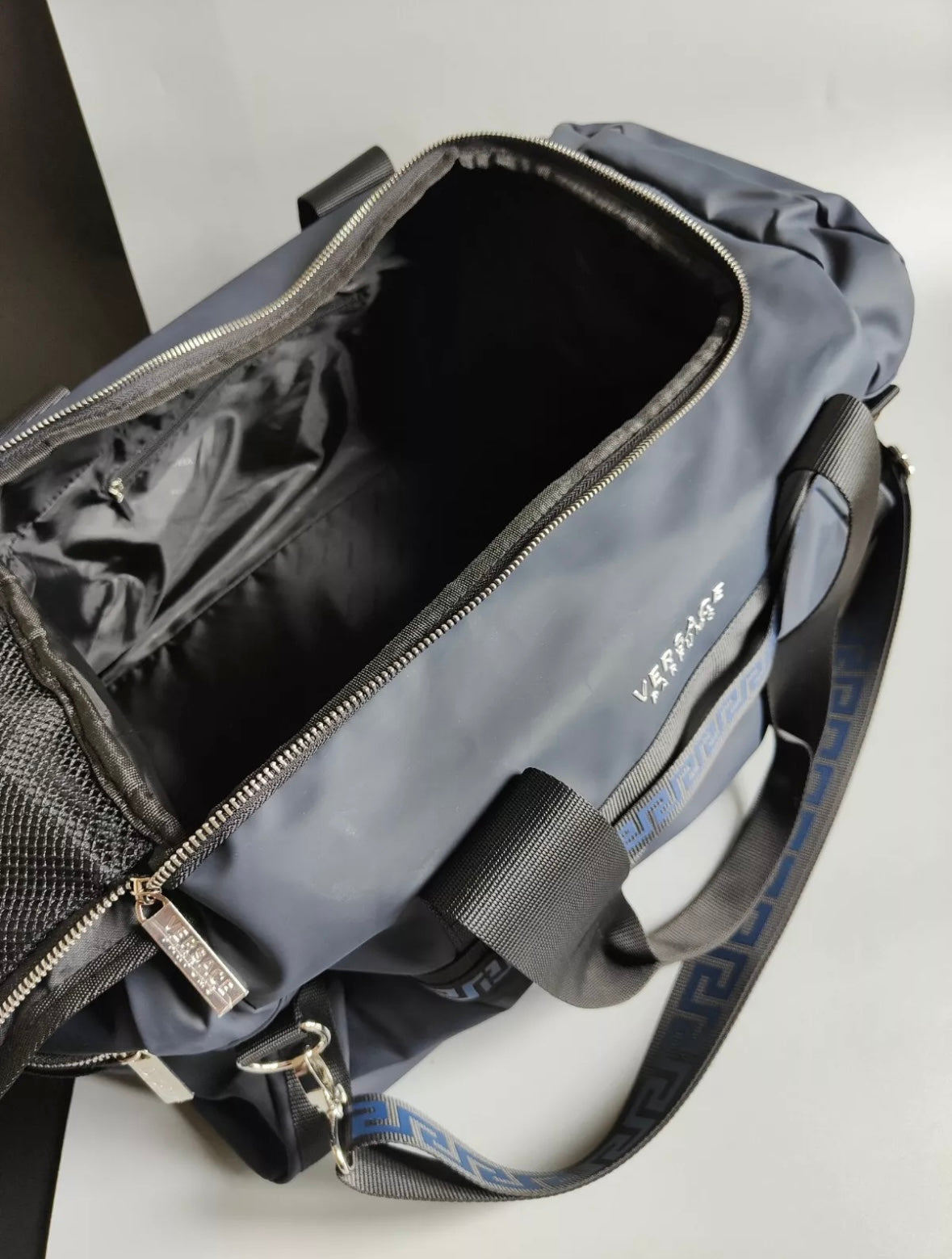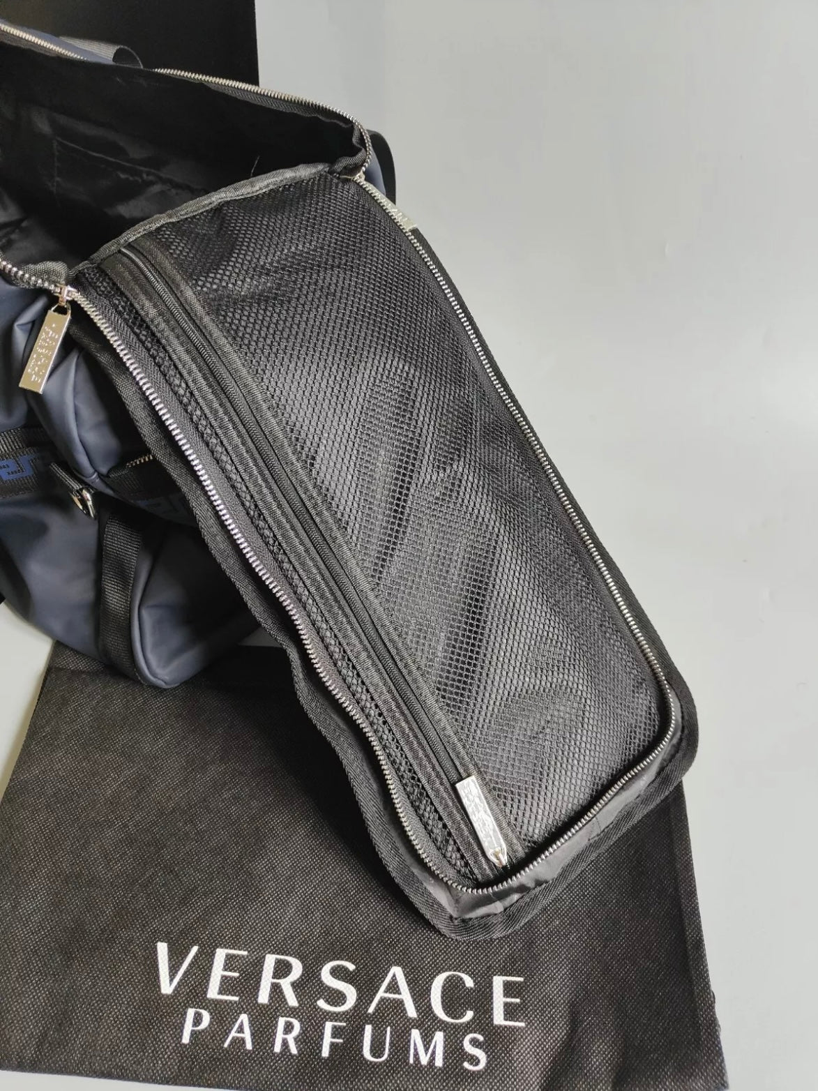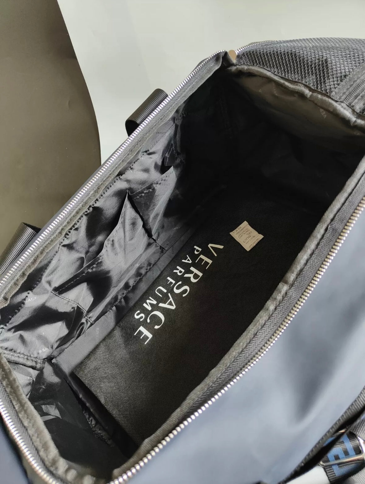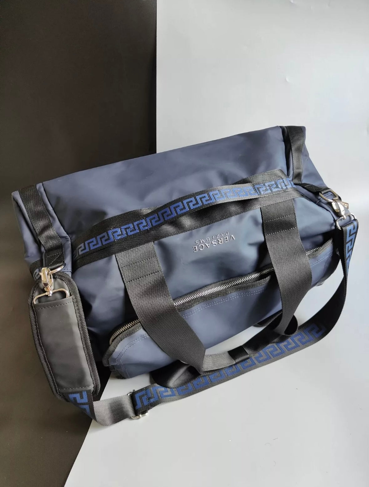 The bag features a spacious compartment that can fit all your essentials for your weekend trip, sports activities, or gym sessions. The Versace Parfums Weekend Bag is a perfect choice for men who value style and functionality.