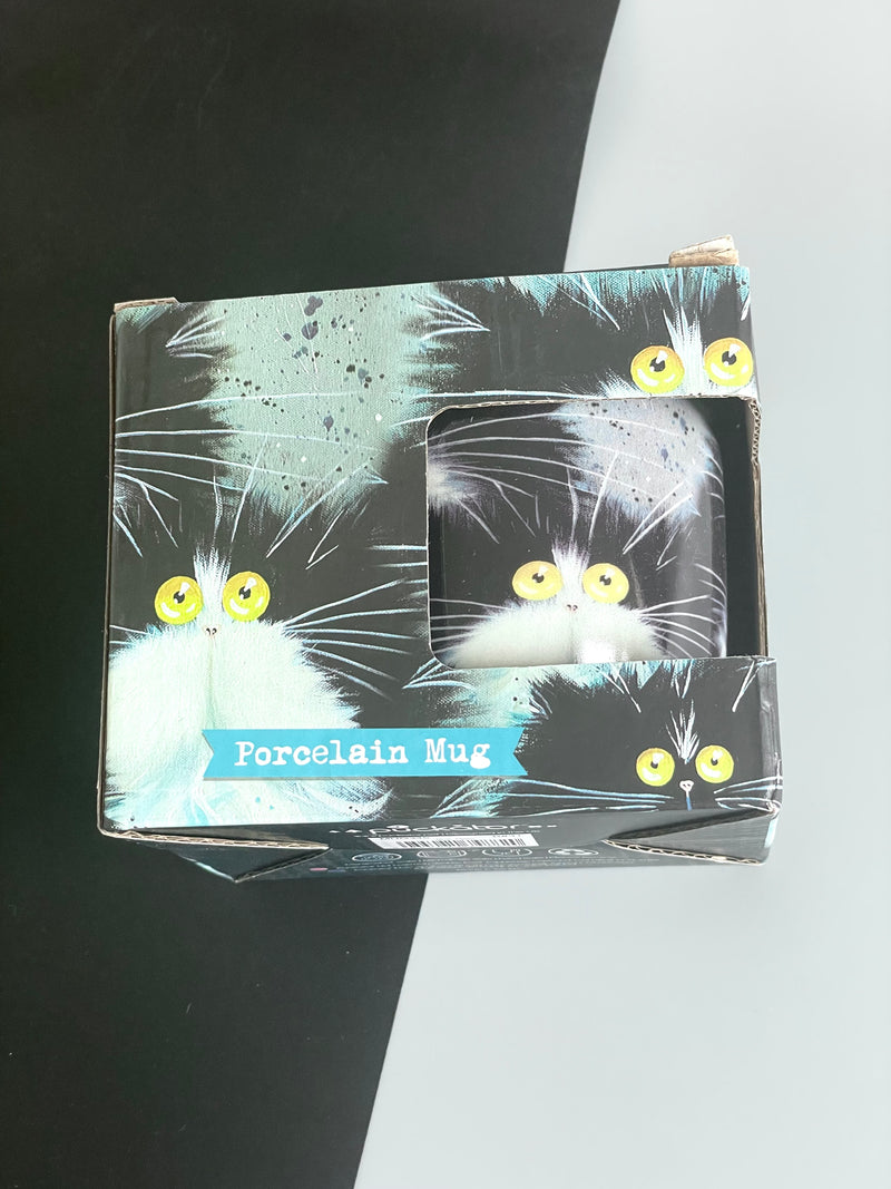 Porcelain Tea Mug Fluffy Black & White Cats Design Cat Mug Coffee Cup