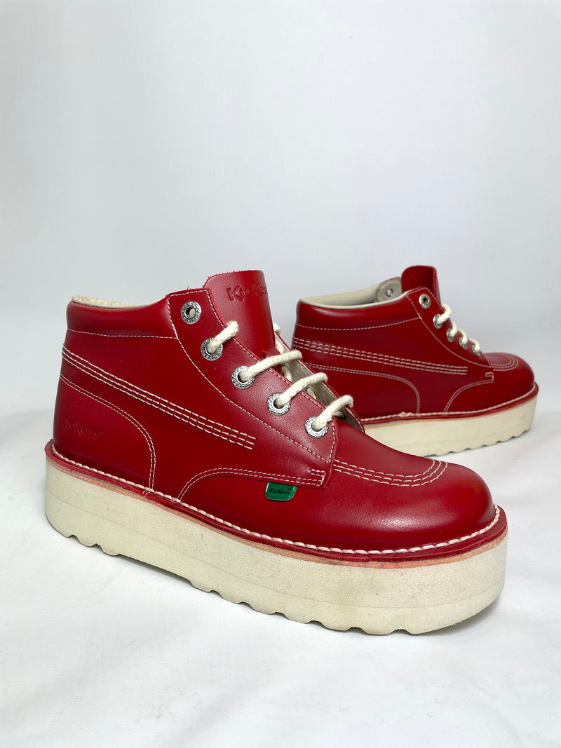 Kickers Kick Hi Womens Classic Platform Boots Red Leather