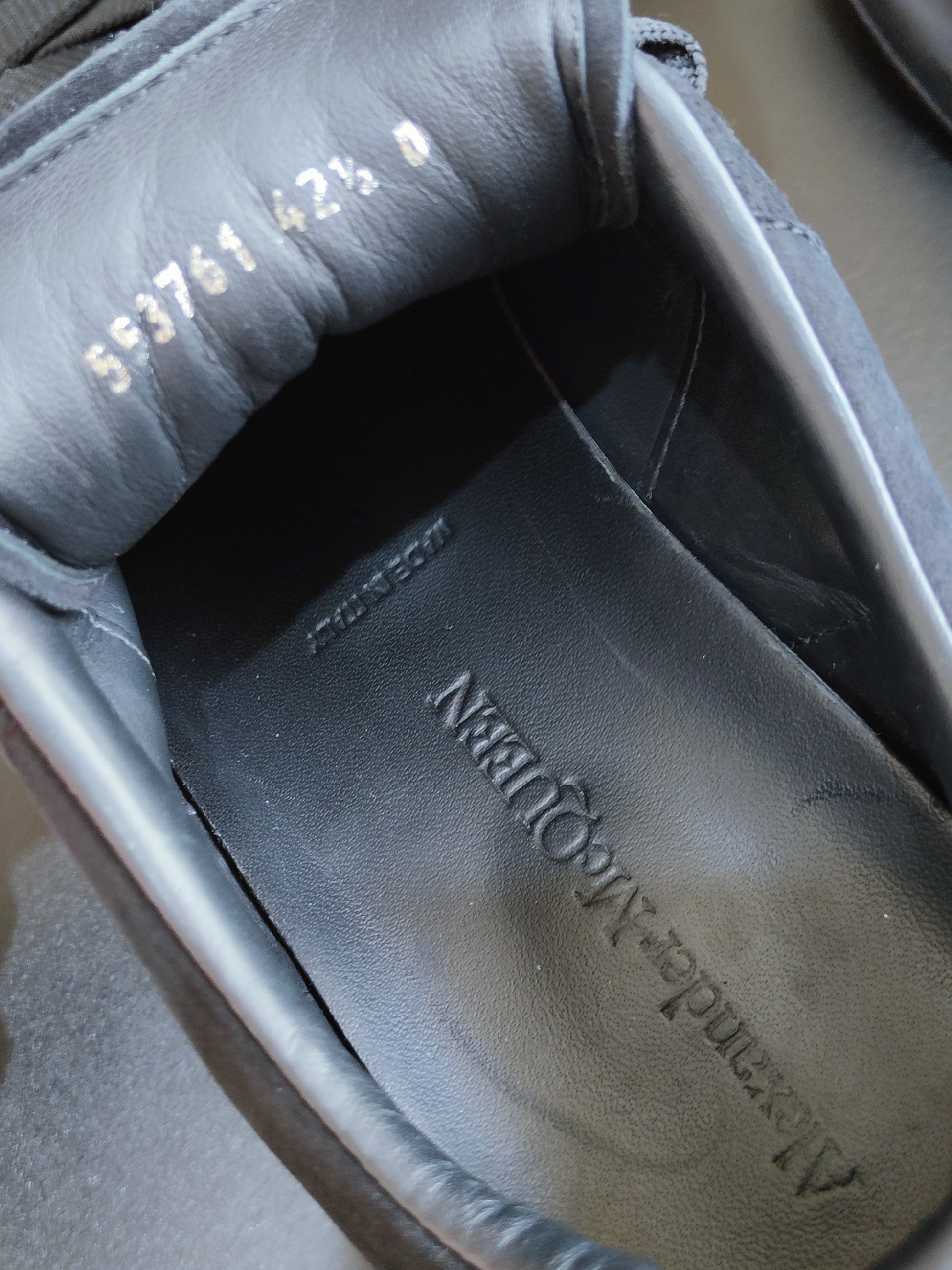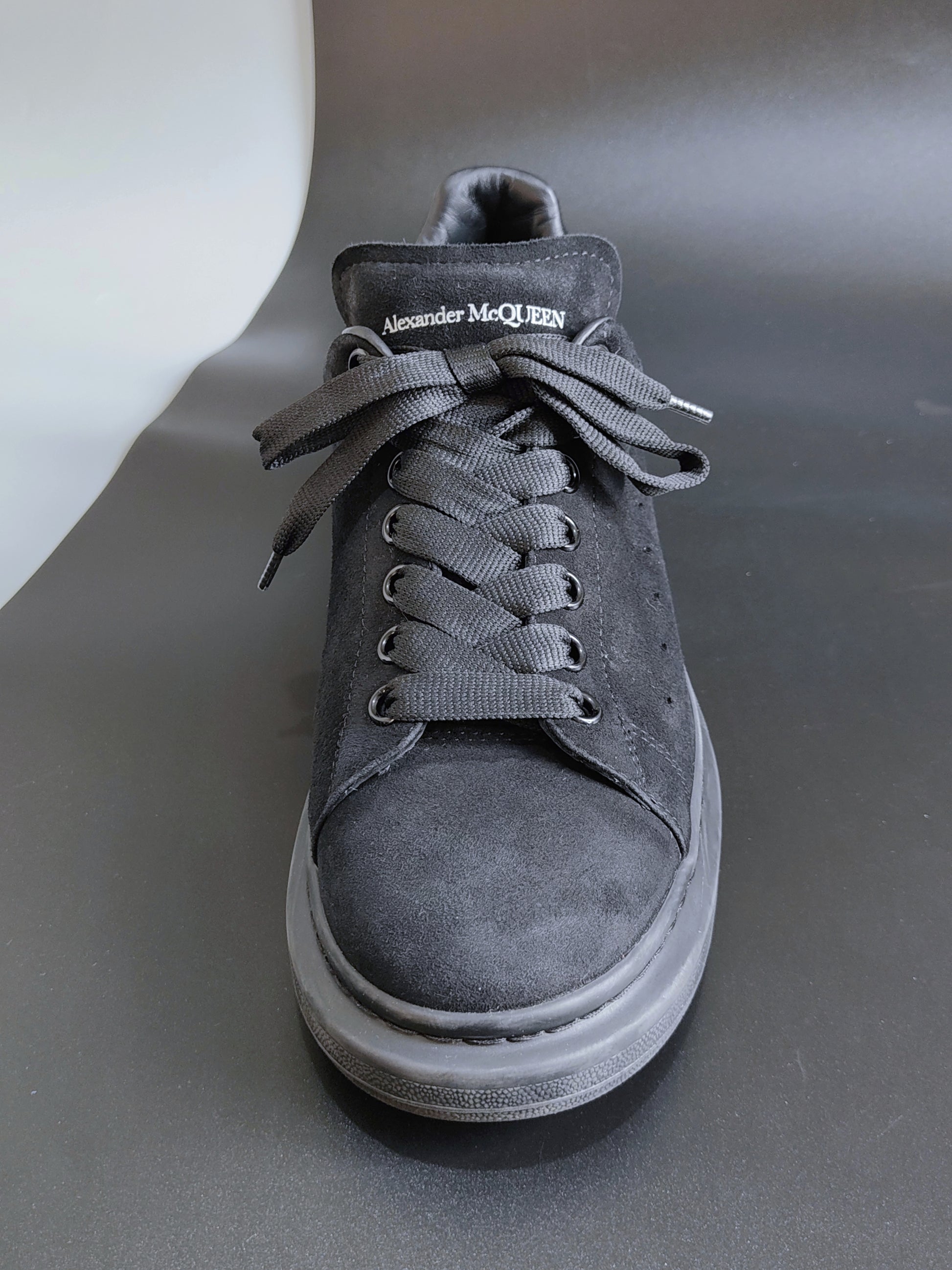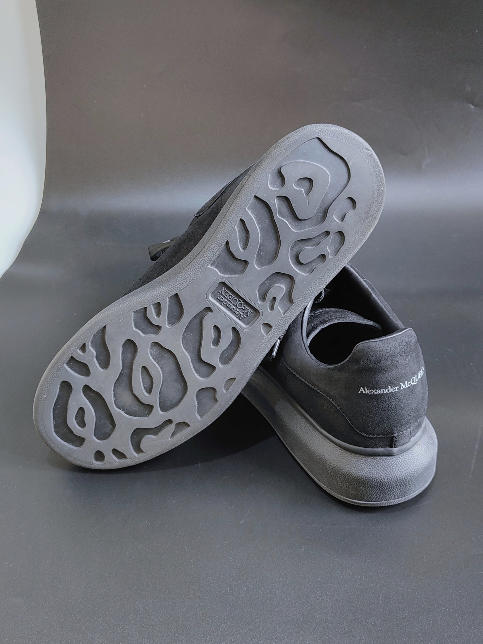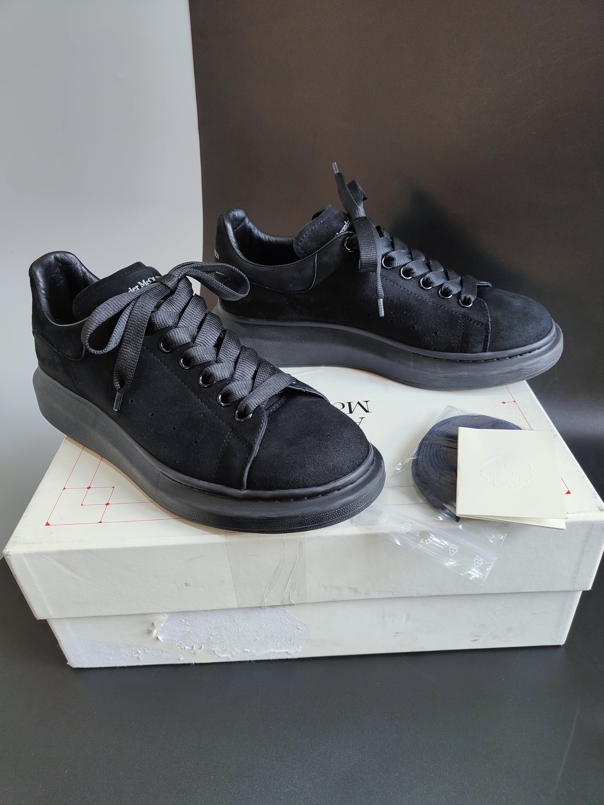 Alexander McQueen's Oversized Sneakers, in luxurious All Black Suede, offer a modern, stylish look. The oversize design ensures an ideal fit for comfort and stability. With their timeless yet edgy design, these sneakers are perfect to complete any outfit.