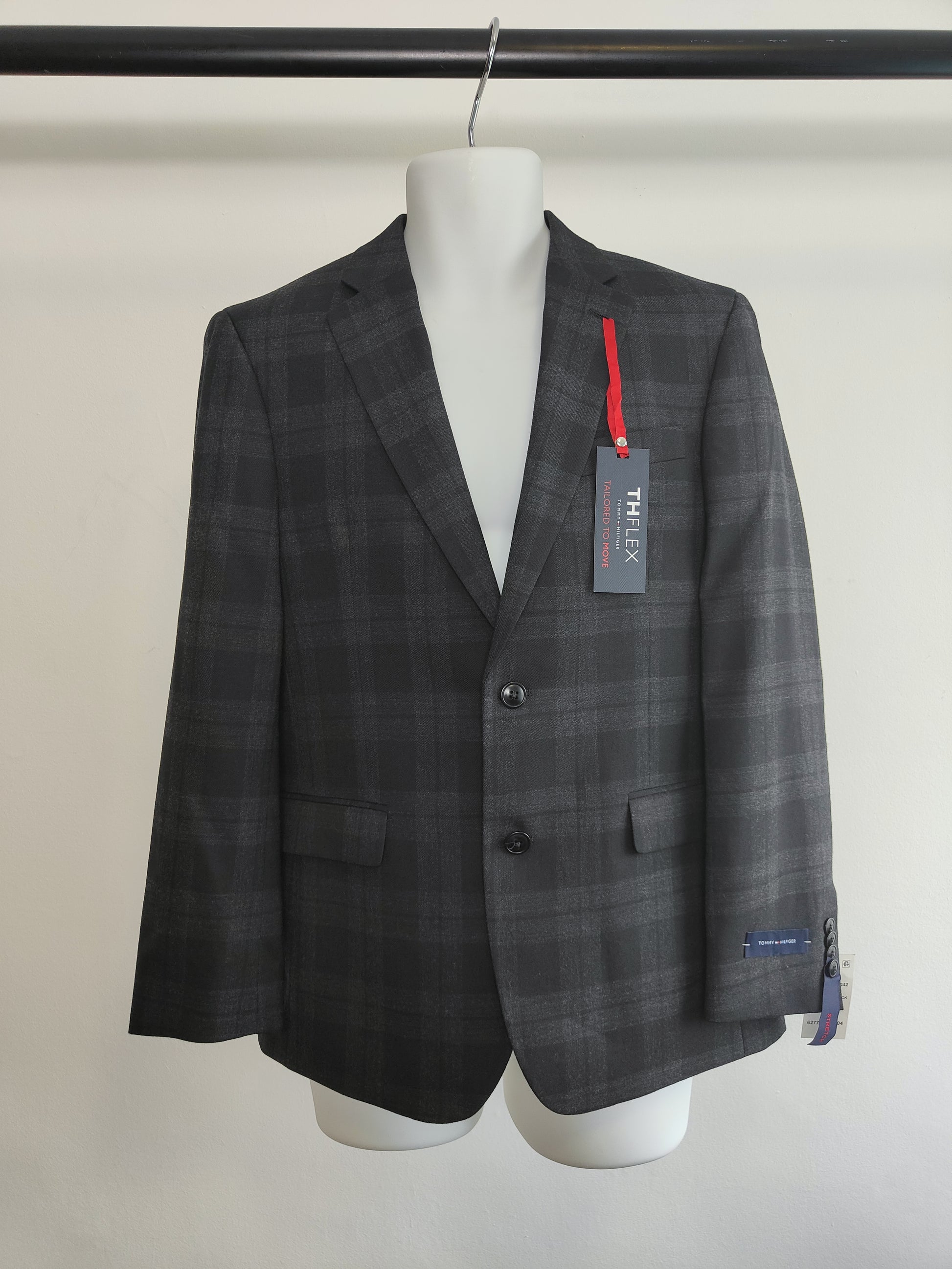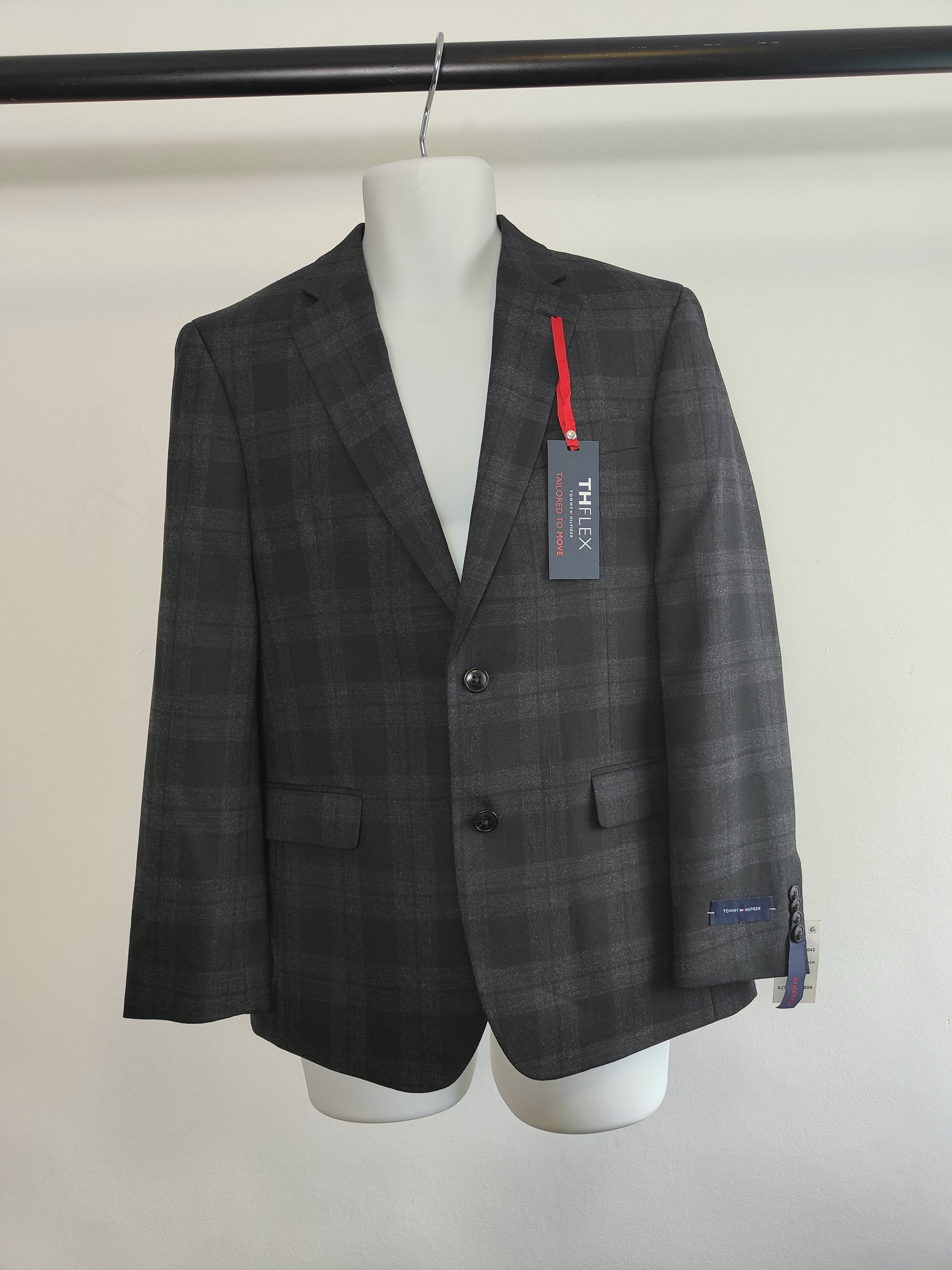 Score some serious style points with the Tommy Hilfiger Men's Blazer in charcoal-Black 44R! This blazer will add a touch of sophistication to any outfit, while the charcoal-black color adds a modern twist. Perfect for both work and play, this blazer is a versatile must-have for any man's wardrobe.