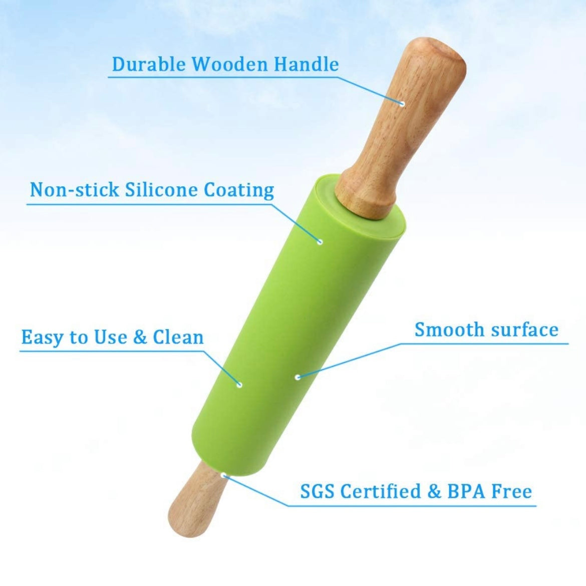 • Material:Rolling pin:Silica gel + Wood(LFGB and FDA certification)