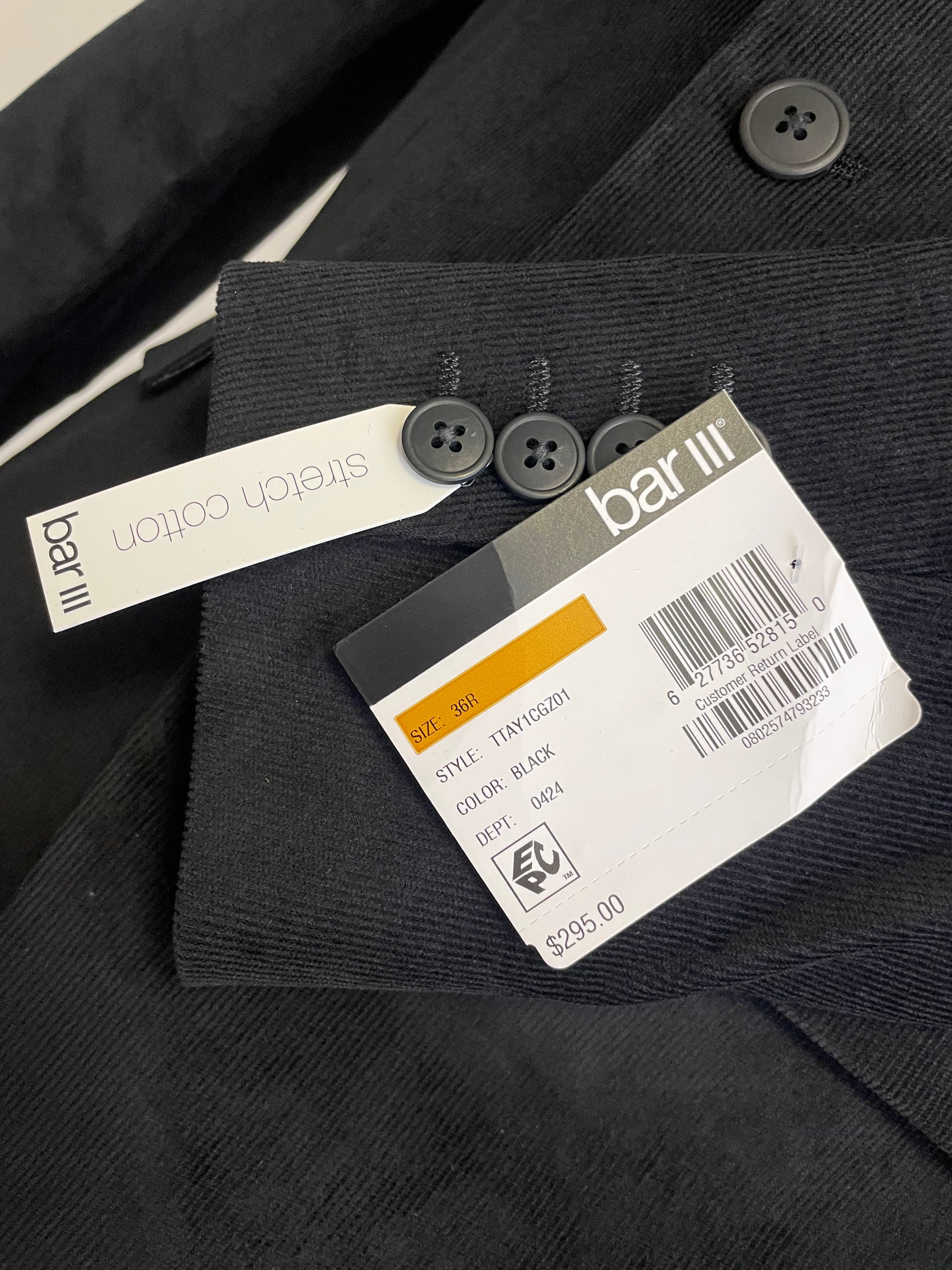 Bar III Men’s Linen Cotton Suit Jacket Blazer Sport Coat in Black 38S