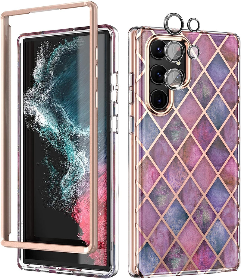 Delidigi for Samsung Galaxy S22 Ultra 5G Case, Dual Layer Shockproof Protective Case [Without Screen Protector] Rugged Full Body Case for Galaxy S22 Ultra 5G 6.8" (Watercolor).
