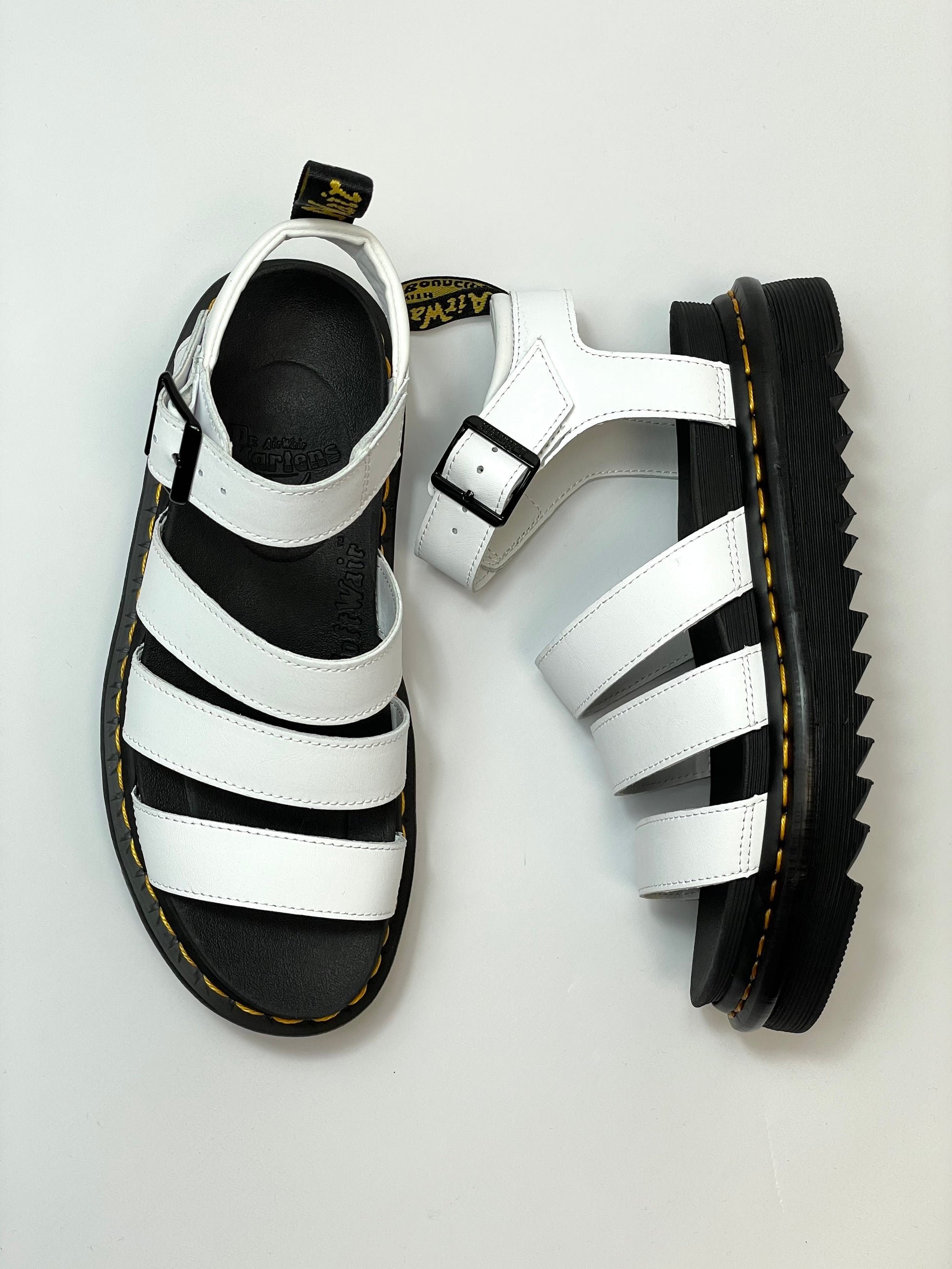 Dr. Martens women’s blaire black classic gladiator leather strap chunky sandals.