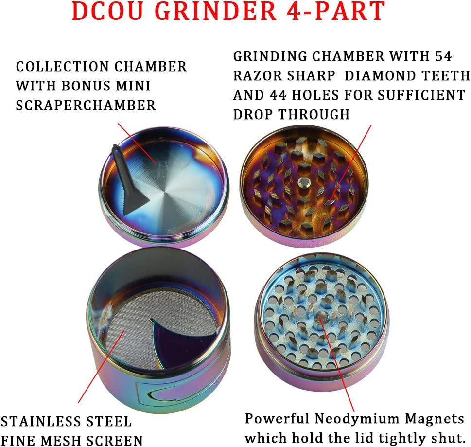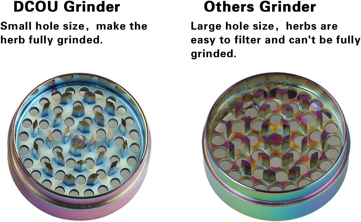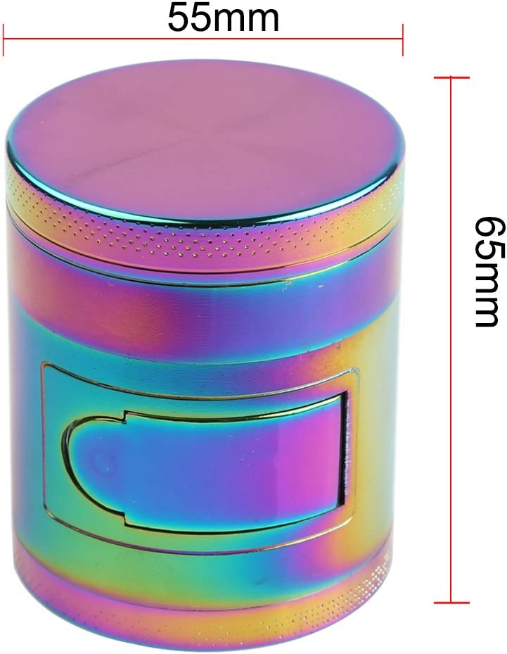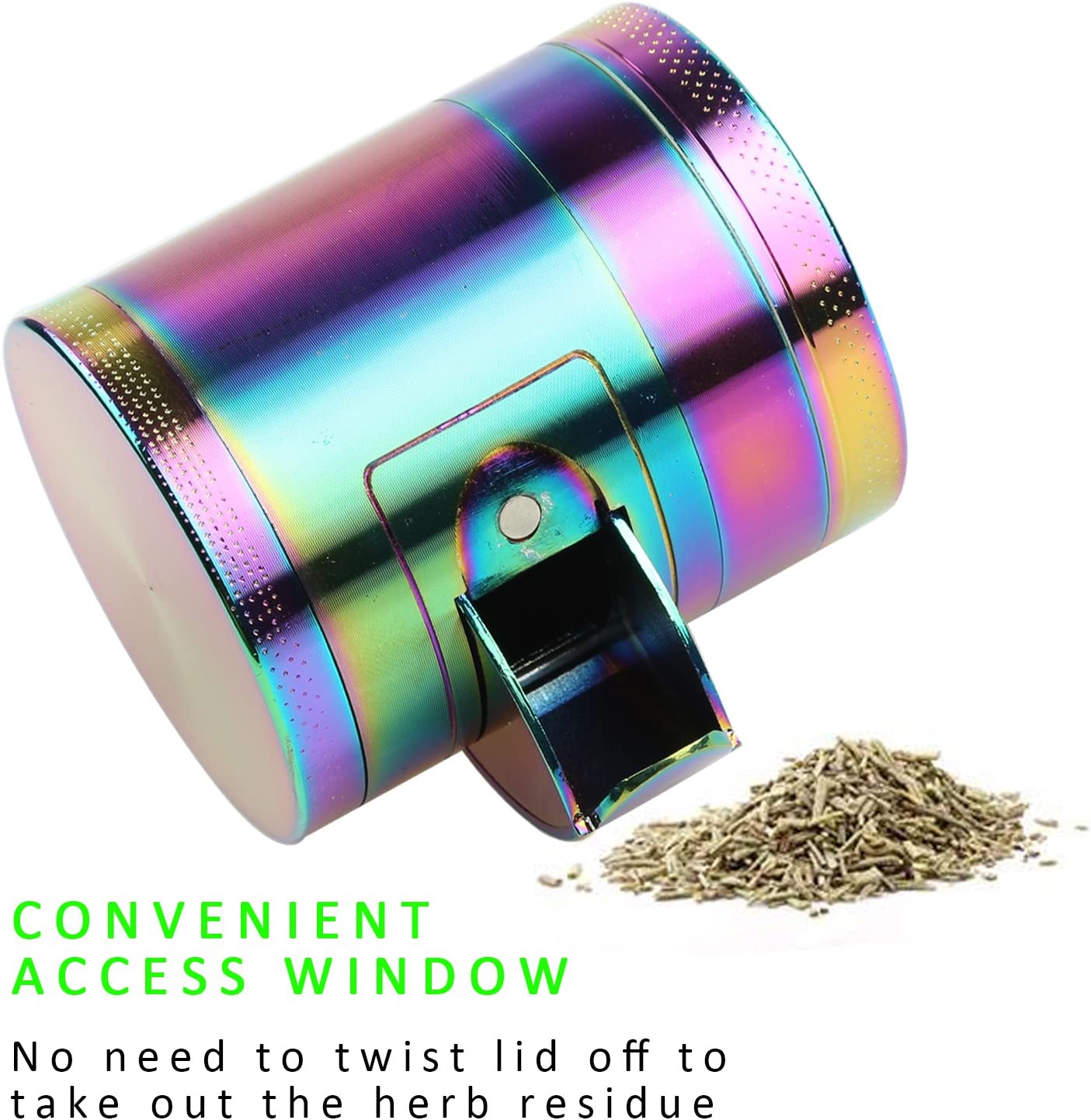 ProduDurable Zinc Alloy 2.2 Inches Rainbow Herb Grinder 4 Piece with Pollen Catcher Heavy Duty Spice Grinder with Access Window.