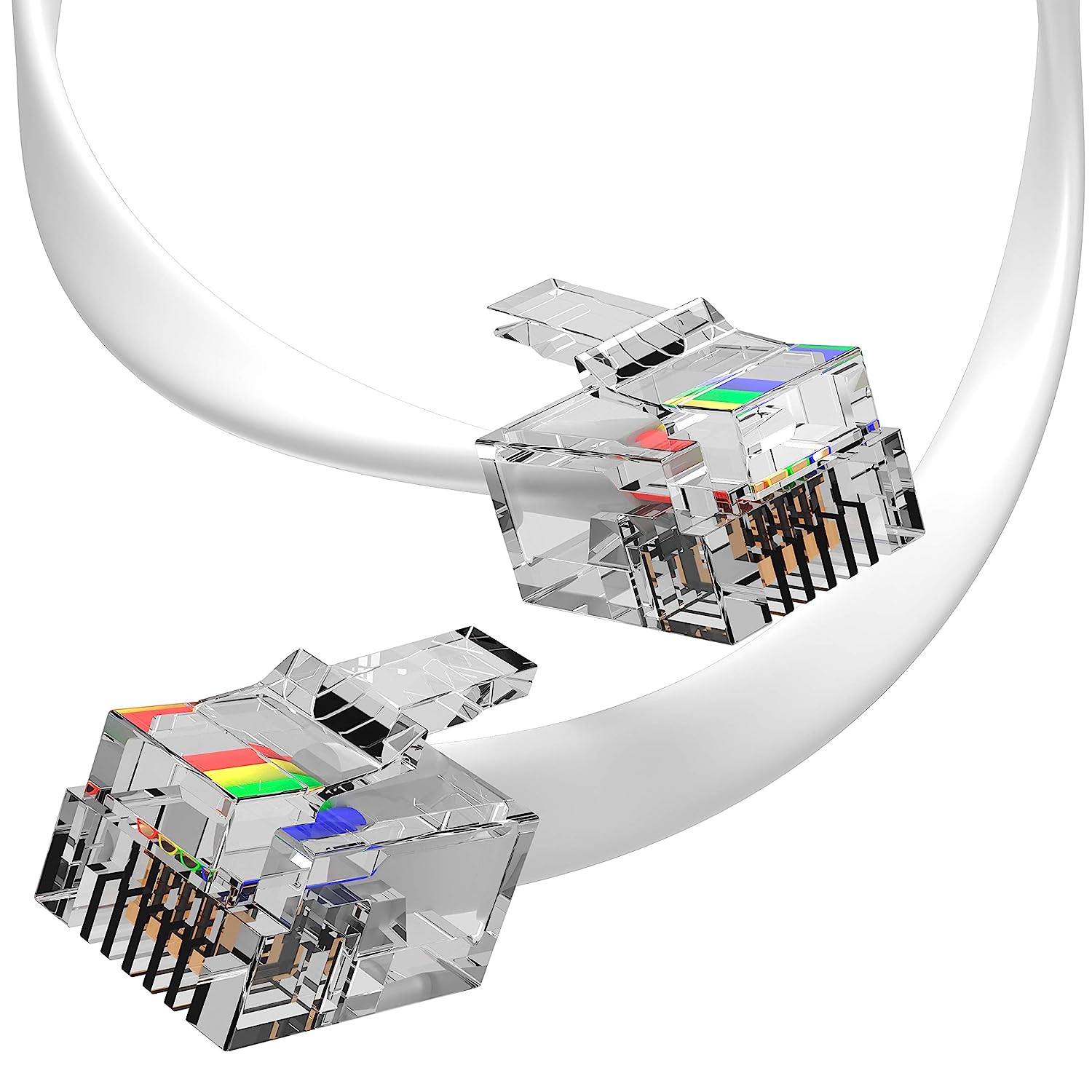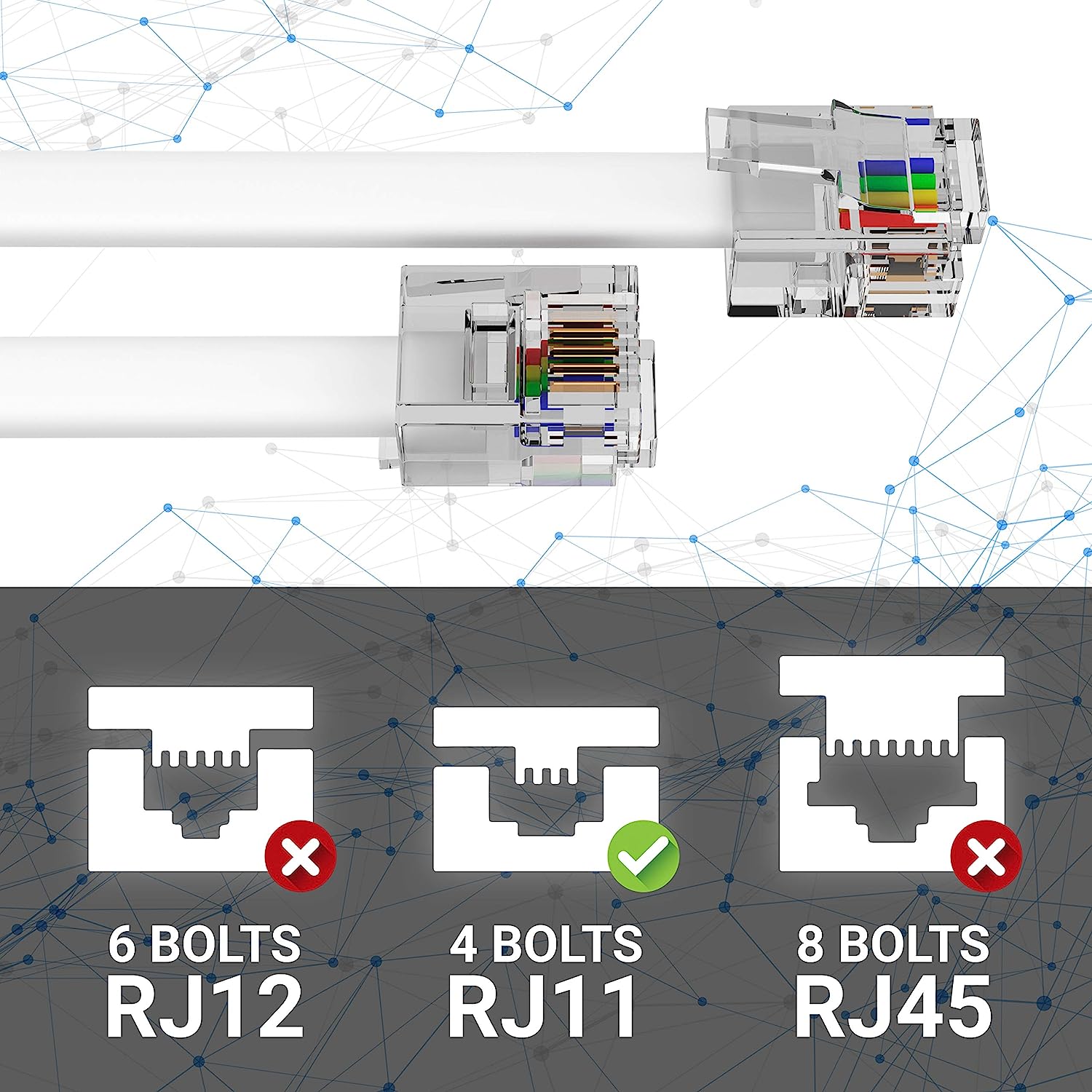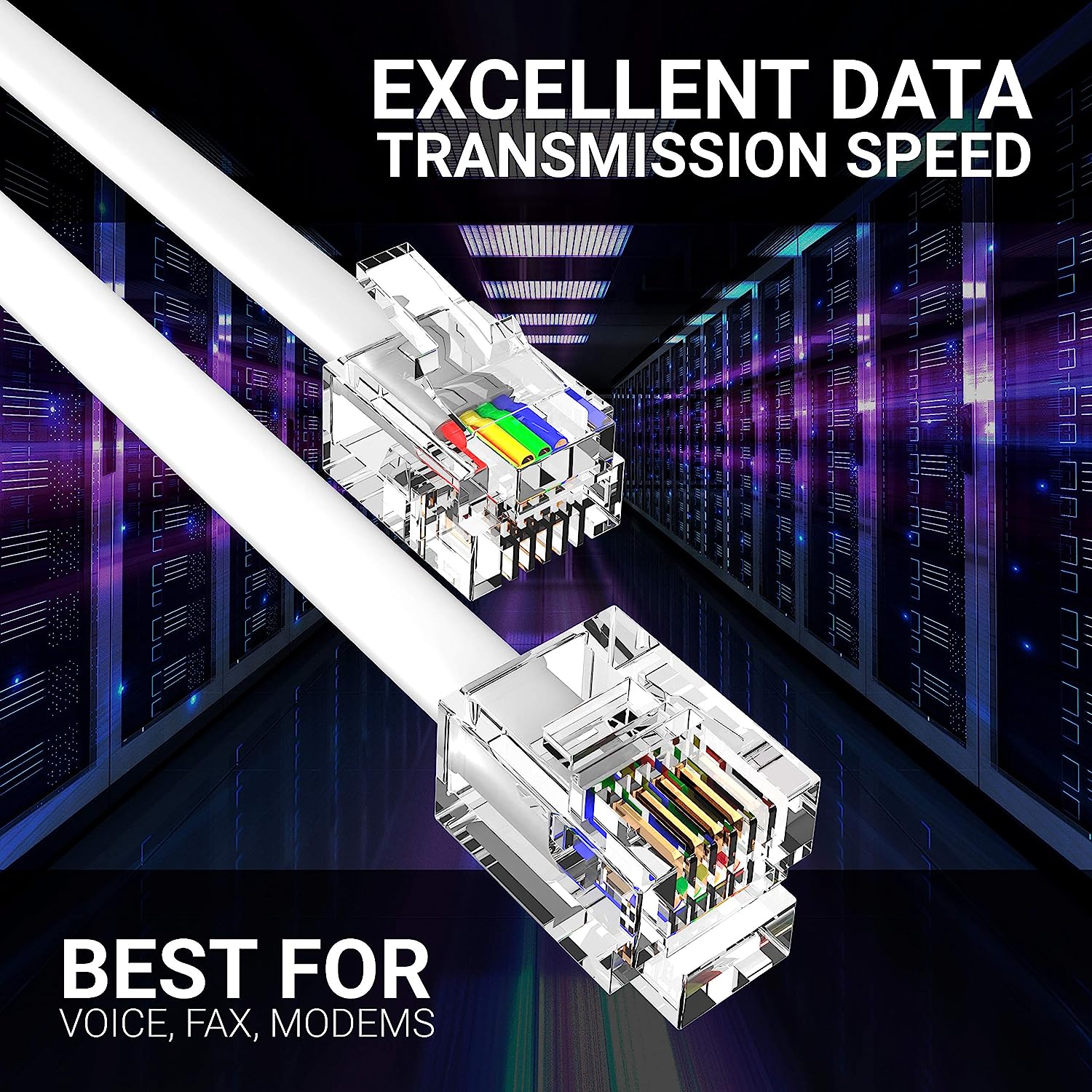 RJ11 Cable Phone Cord for Landline & Telephone Cord for RJ11 to RJ11 Devices White