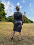 Ralph Lauren Women’s Galaxy Foil Becca Cap Sleeve Day Dress in Navy Metallic.