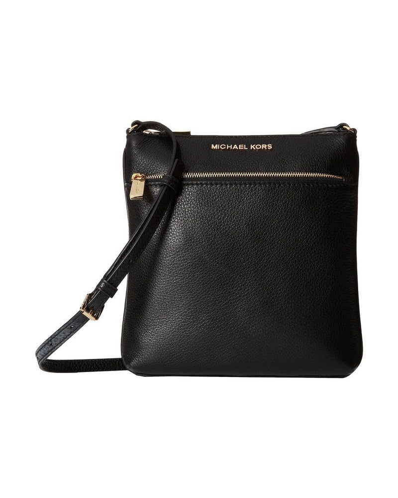 Michael Kors Flat Lambskin Leather Crossbody Bag in Black