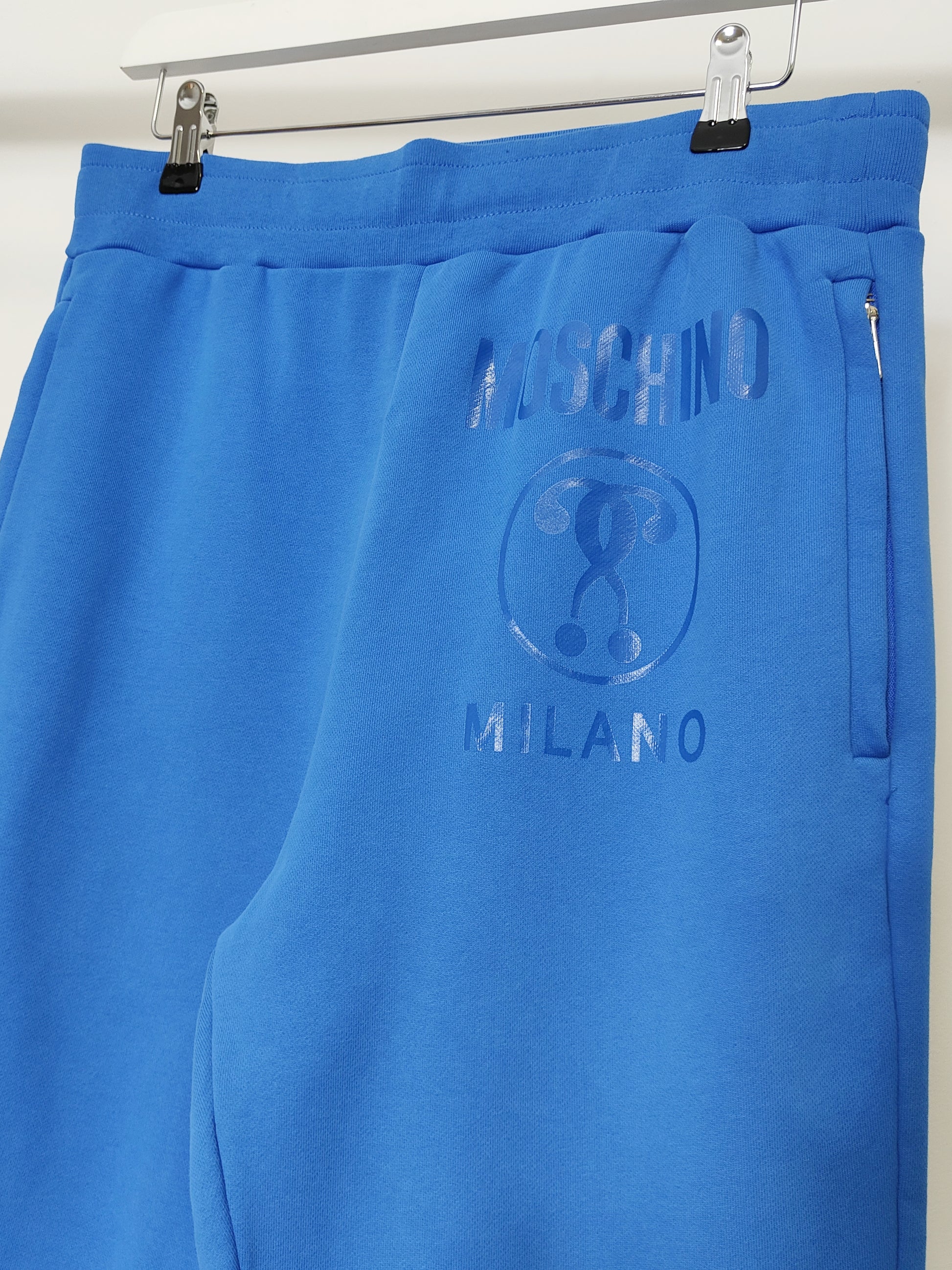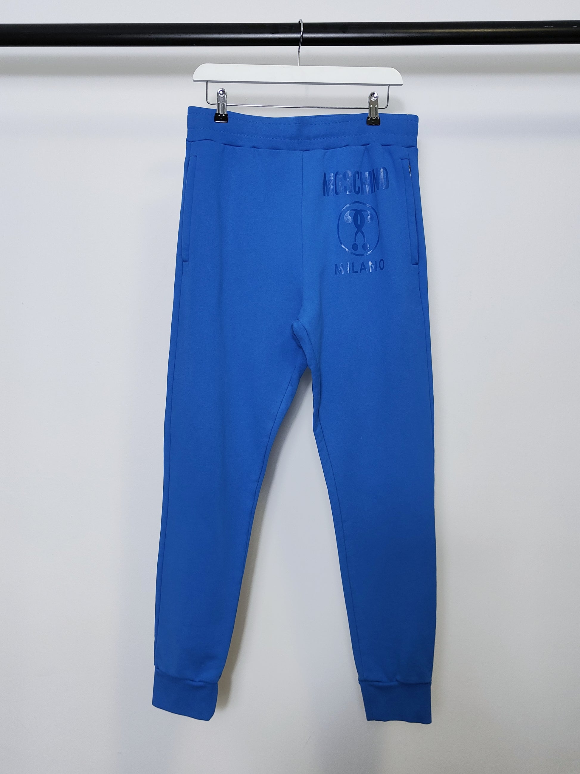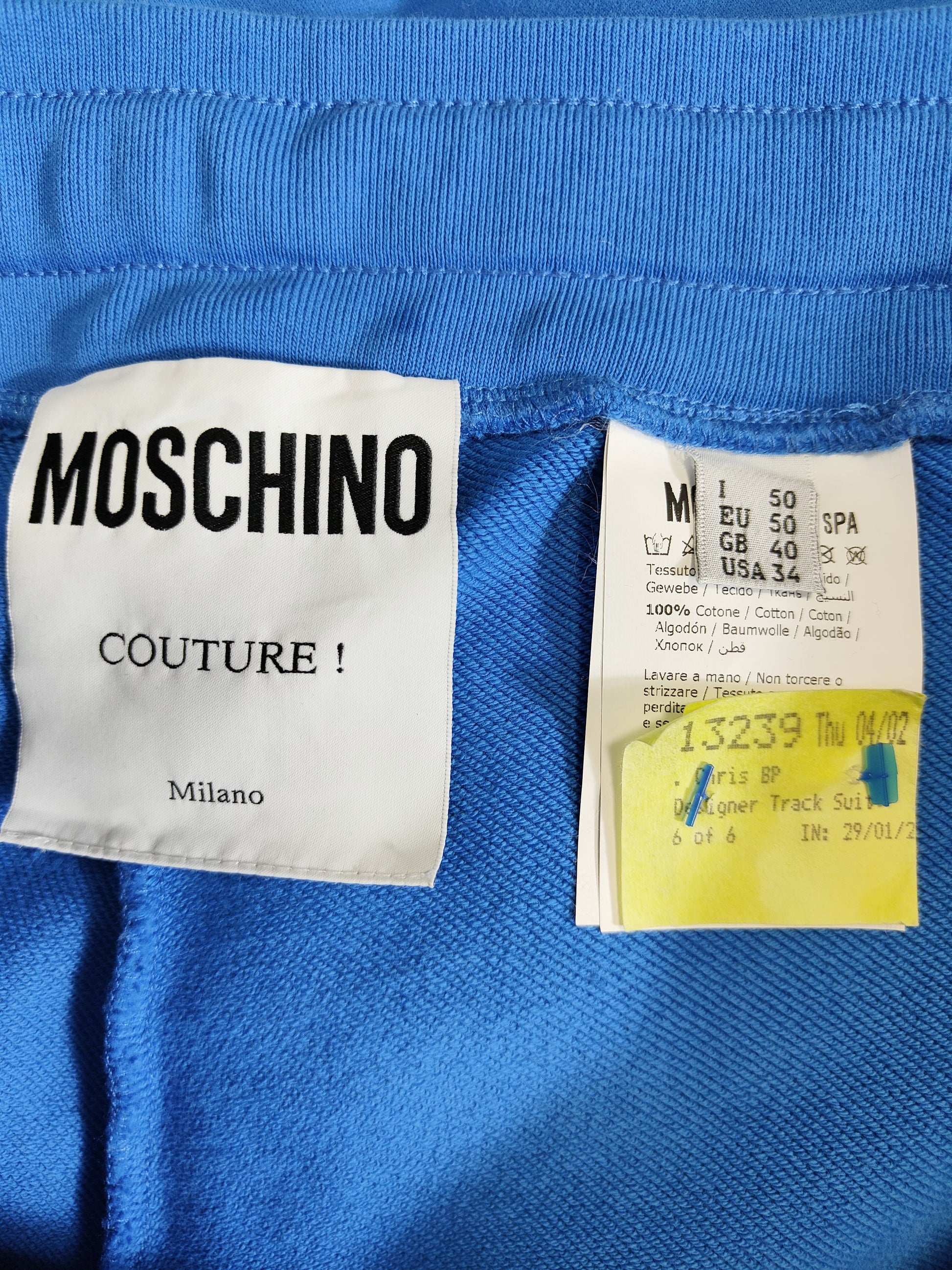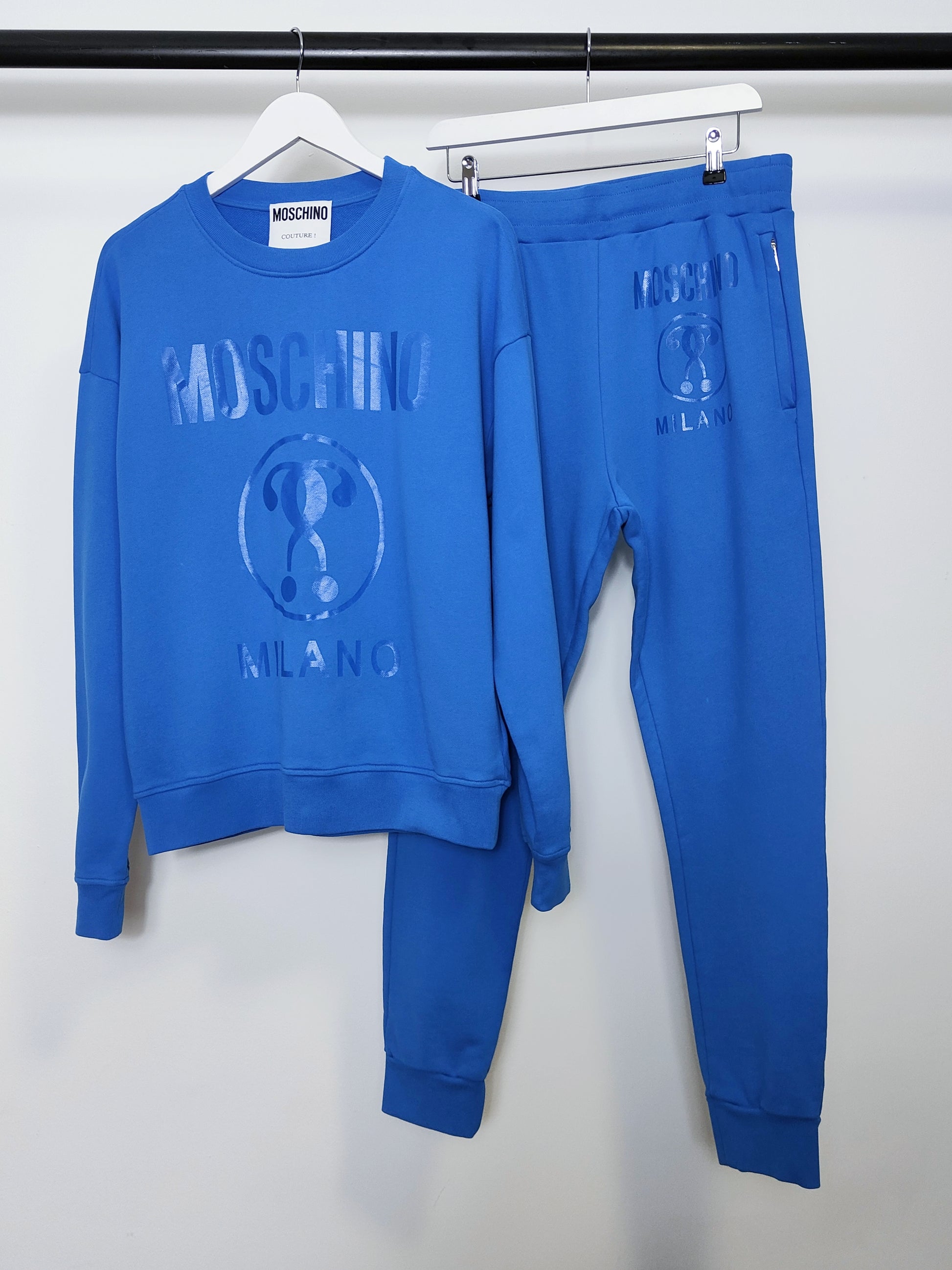 This luxurious track suit is crafted from quality cotton, designed for comfort and style. Featuring the Moschino Couture Milano double question mark logo , this outfit is perfect for everyday casual wear or weekend excursions.