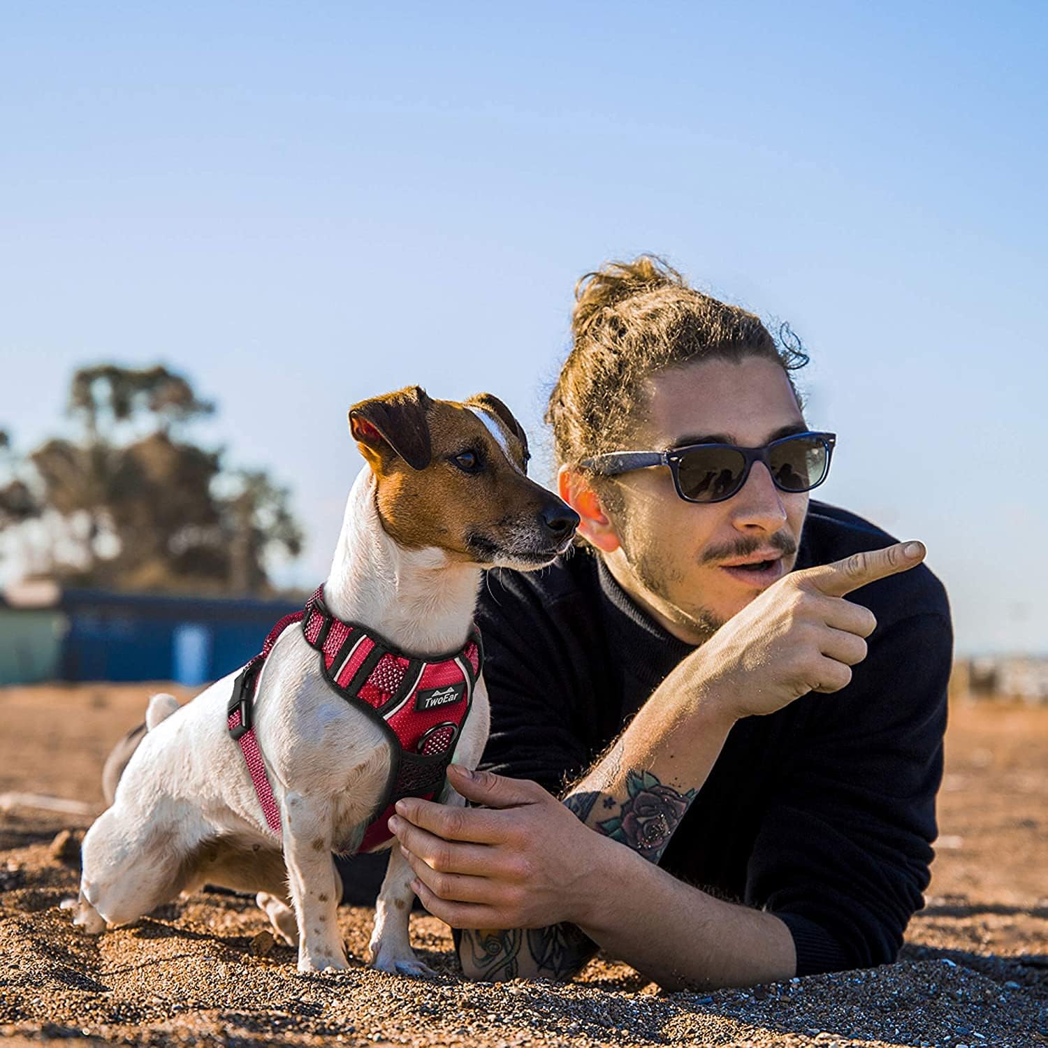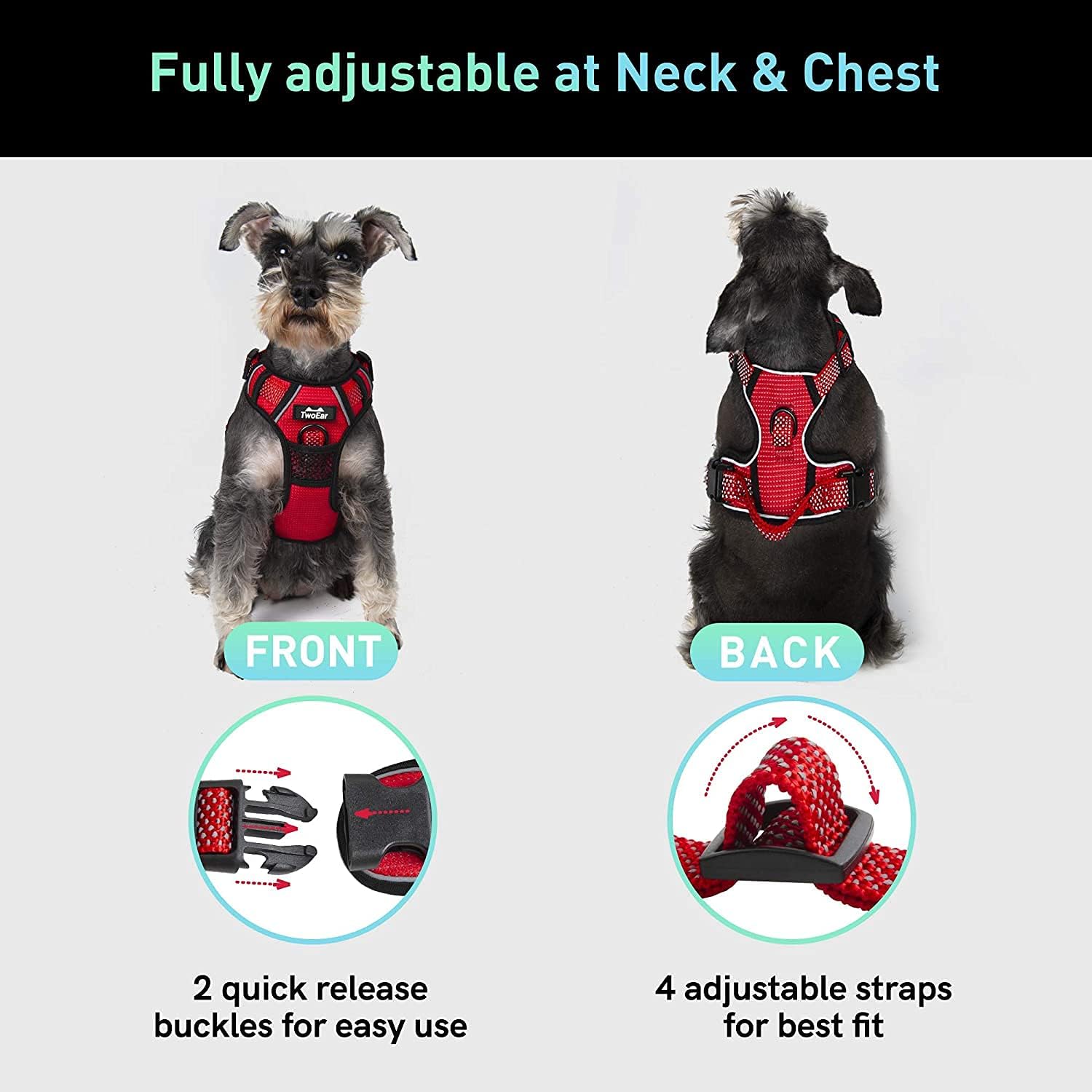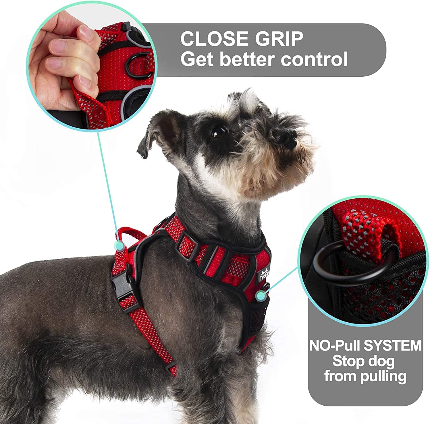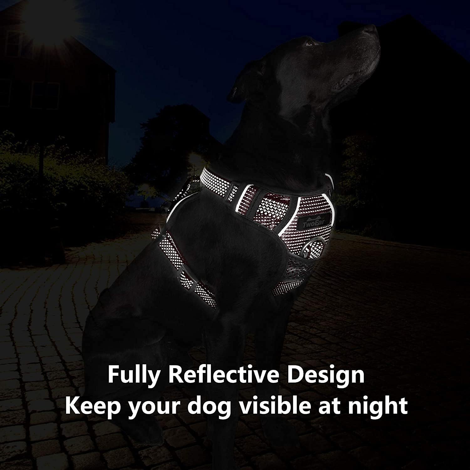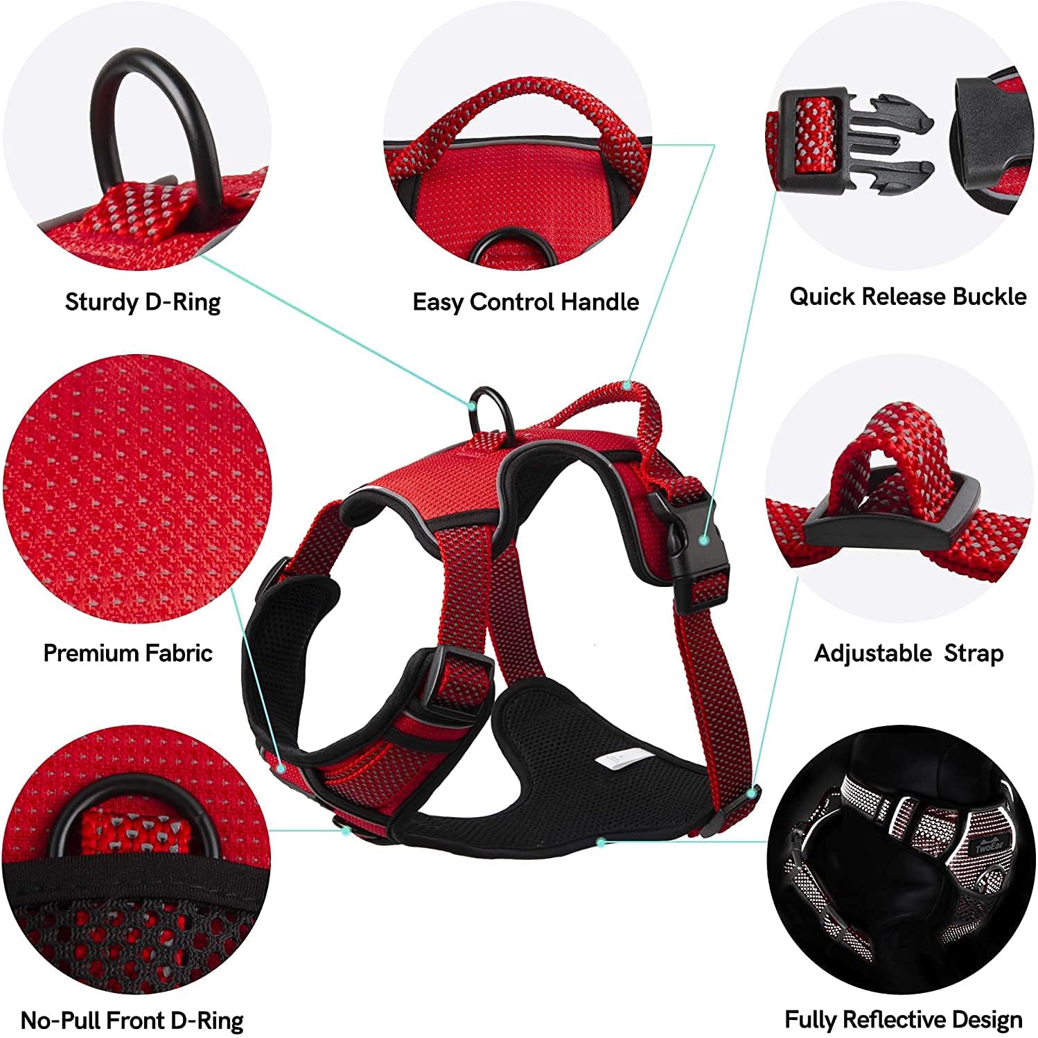 TwoEar Dog No Pull Harness, Reflective Ribbon Full Coverage Dog Harnesses, Adjustable No-Choke Nylon Vest, Soft Breathable Mesh Lining with Easy Control Handle. Available for Small and Extra Large Size Dogs.