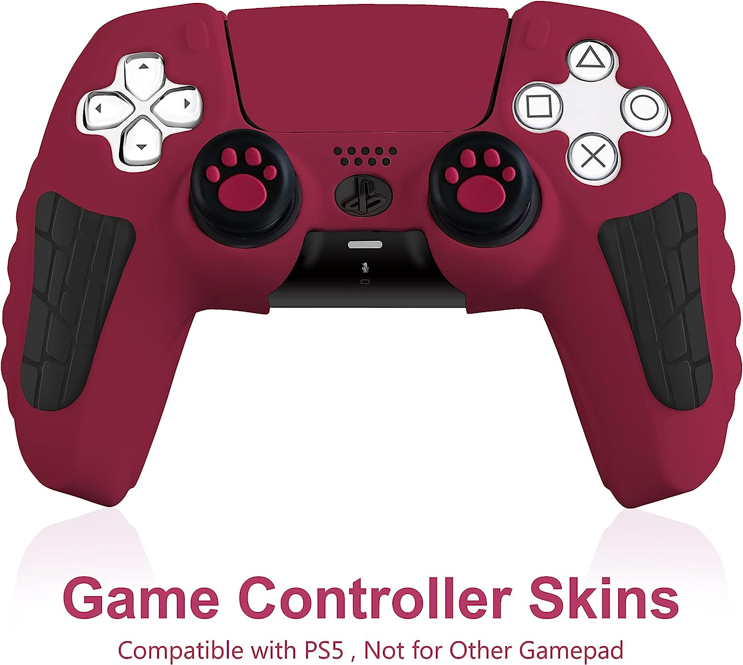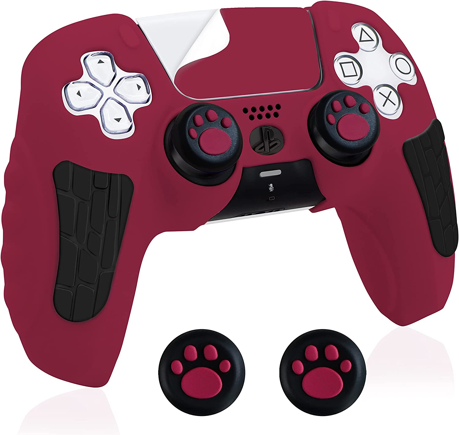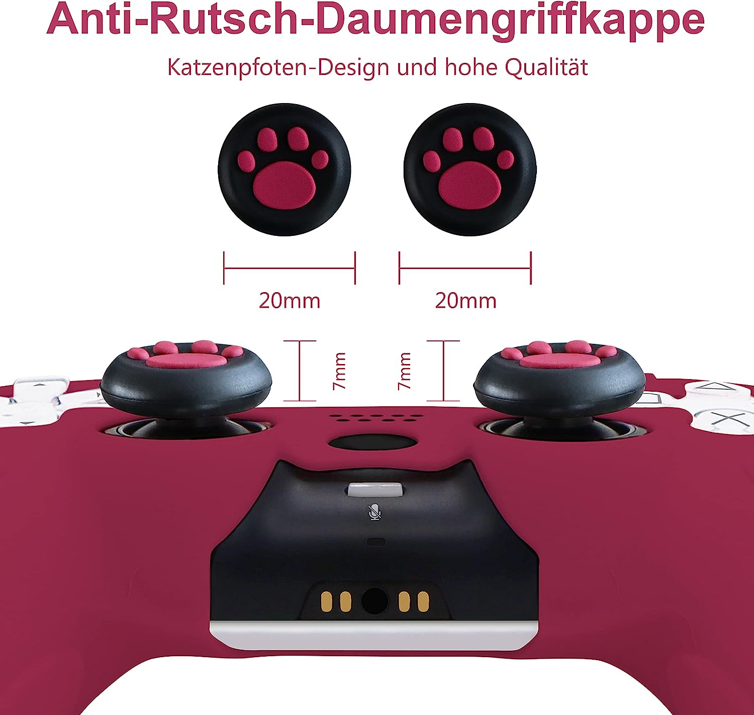 PS5 Controller Silicone Red Cover + 2 Cat Paw Grips Protective Skin Case