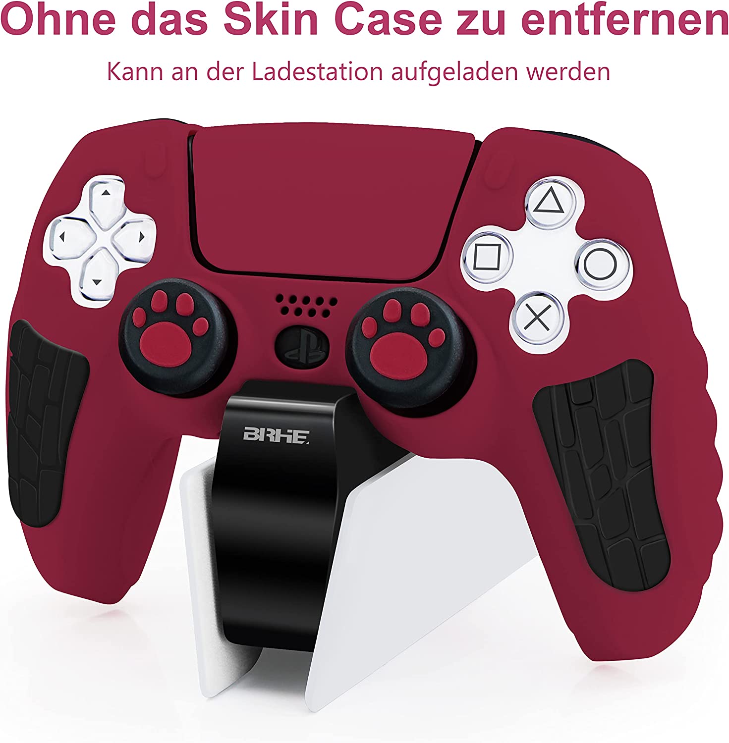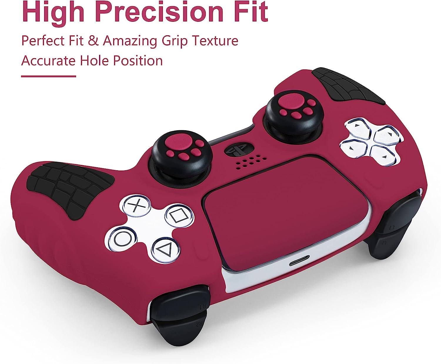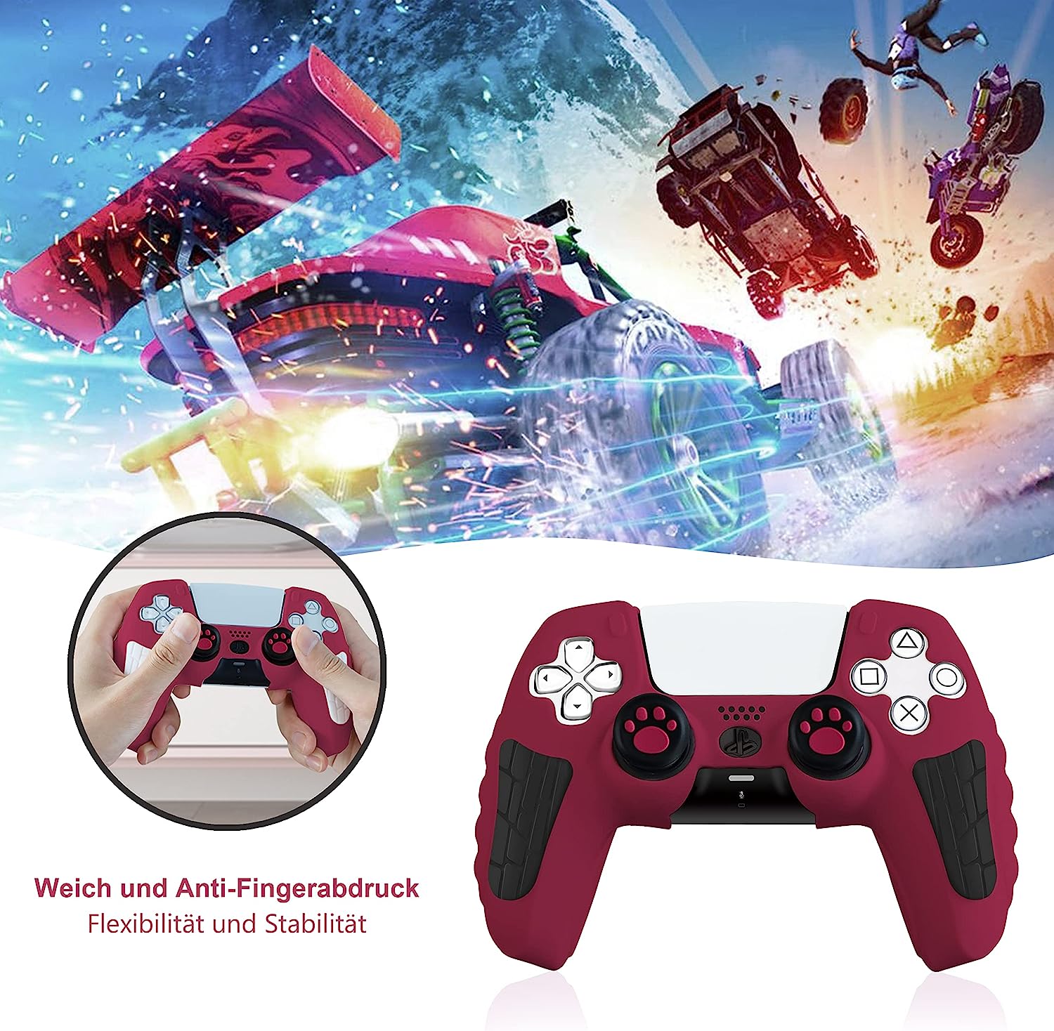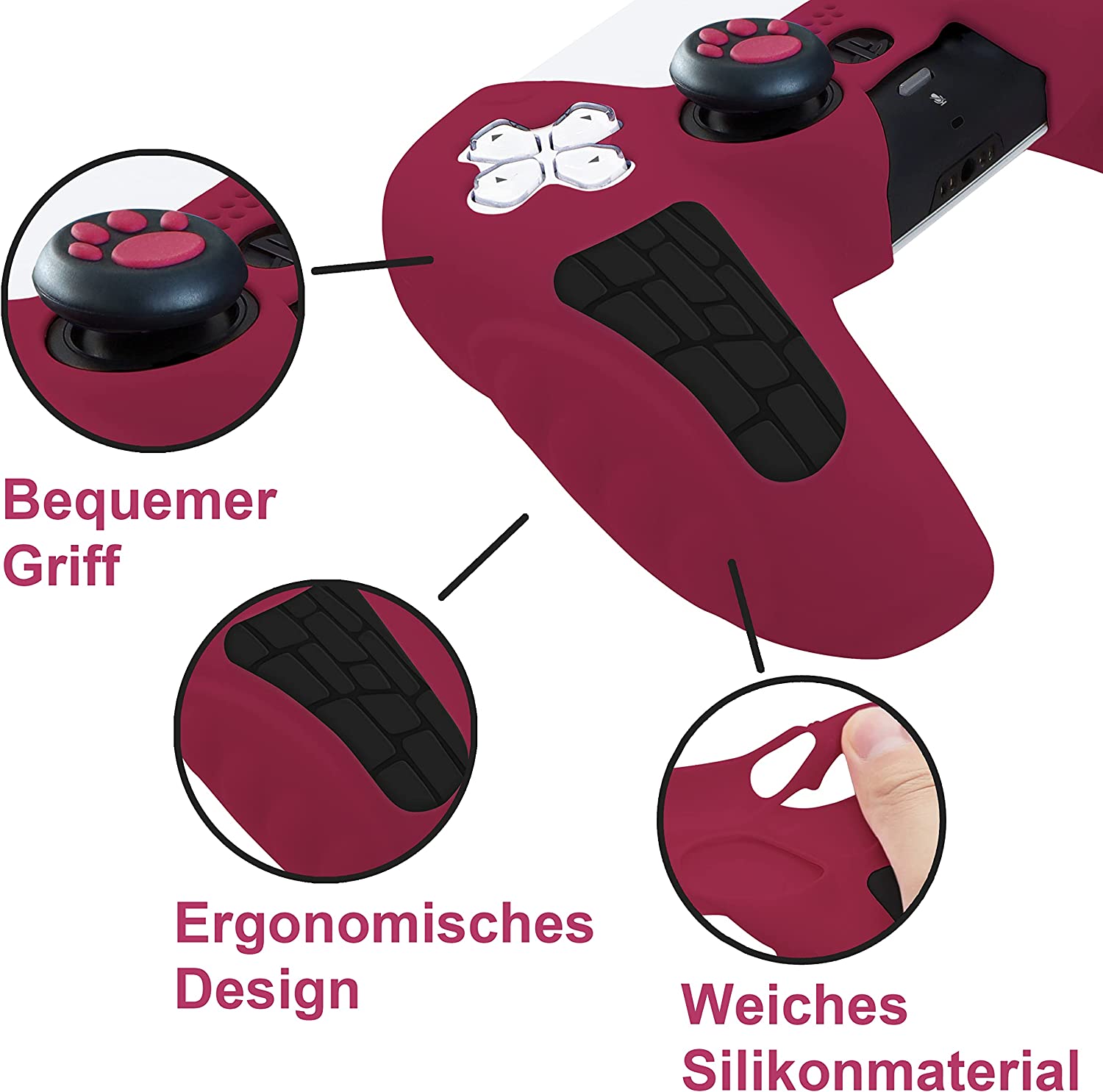 PS5 Controller Silicone Red Cover + 2 Cat Paw Grips Protective Skin Case