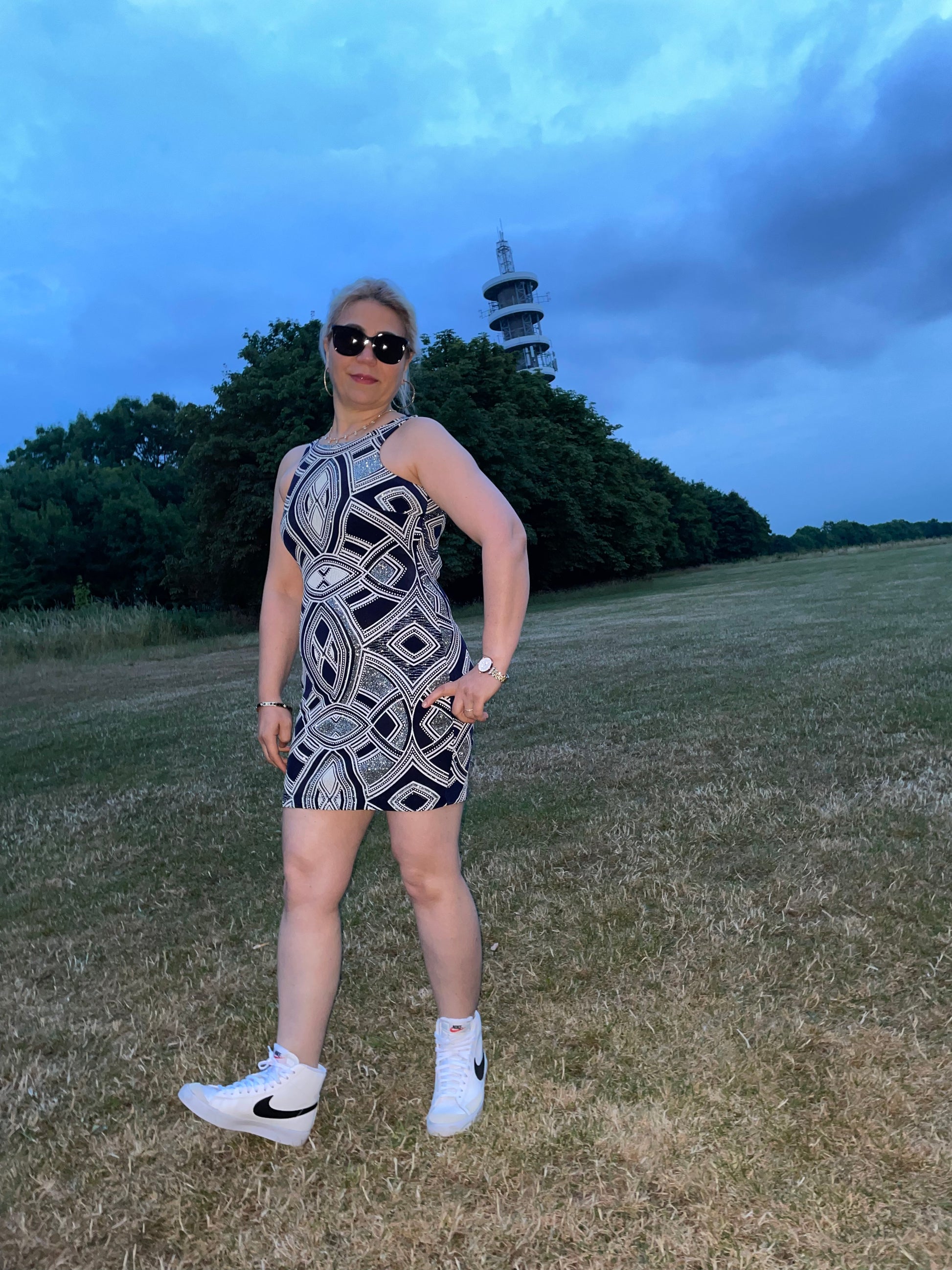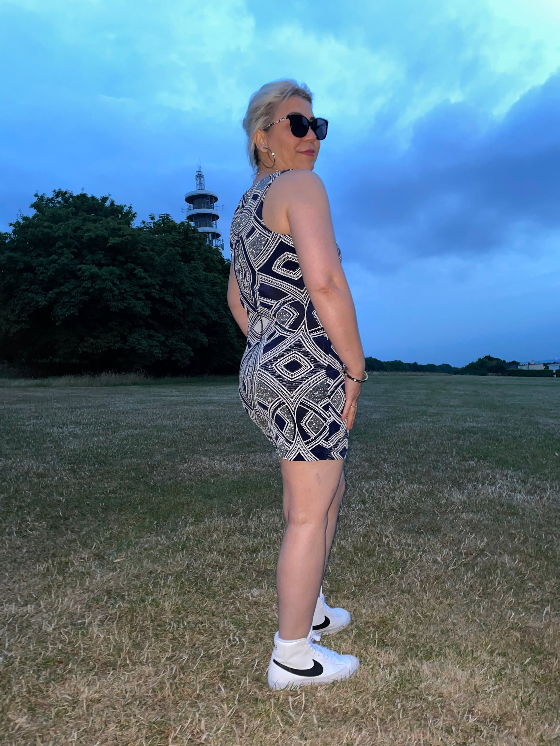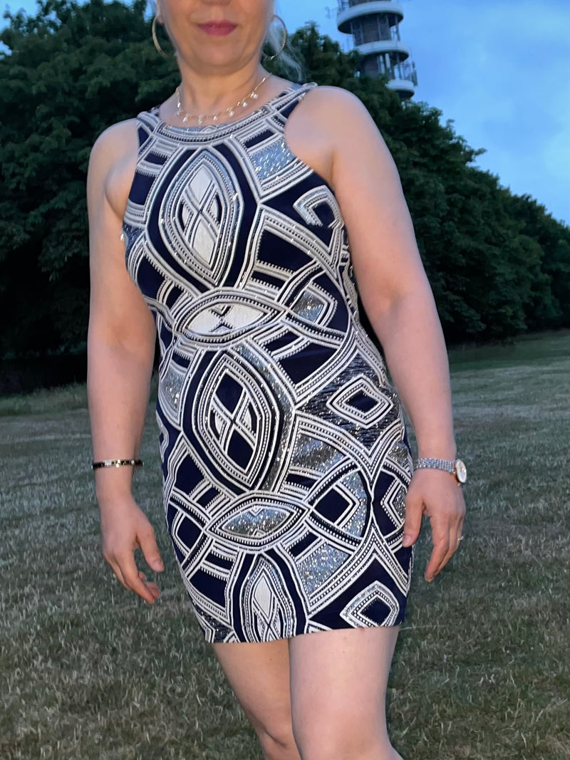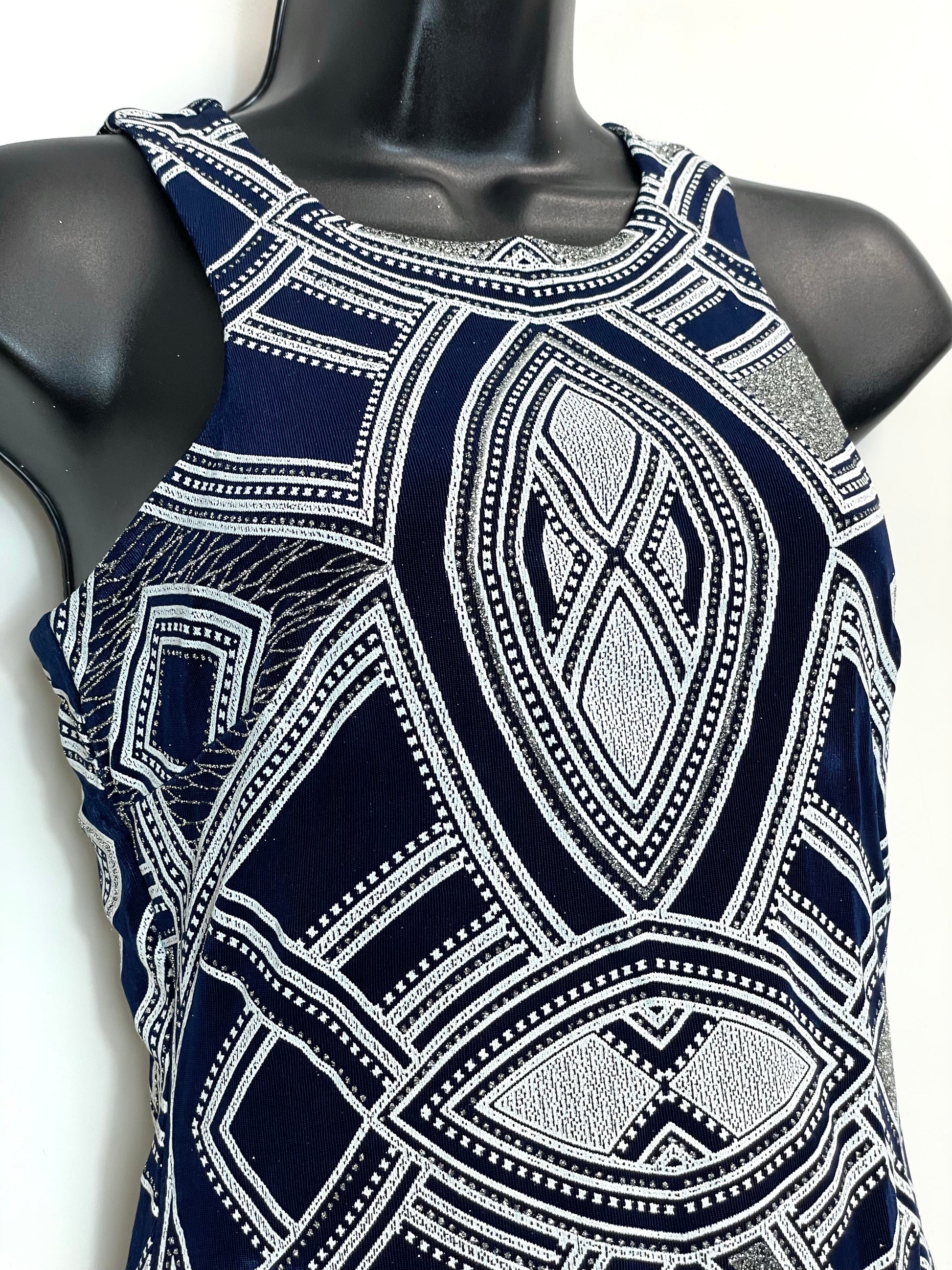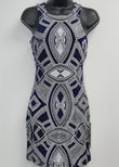 Speechless Women’s Printed Sleeveless Short Bodycon Dress Navy/Silver