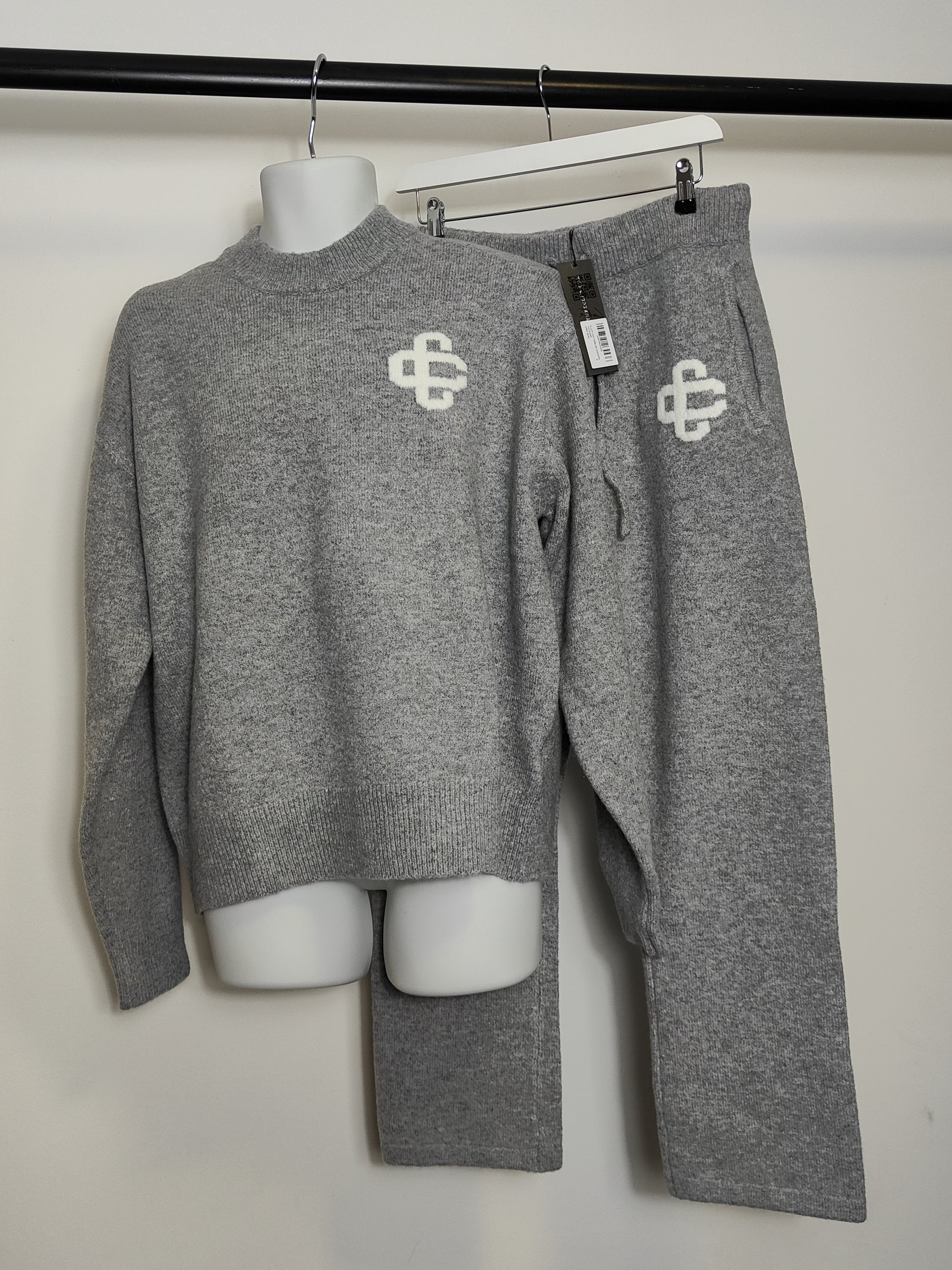 Fluffy Knit Emblem Crew Tracksuit Set Sweatshirt and Joggers