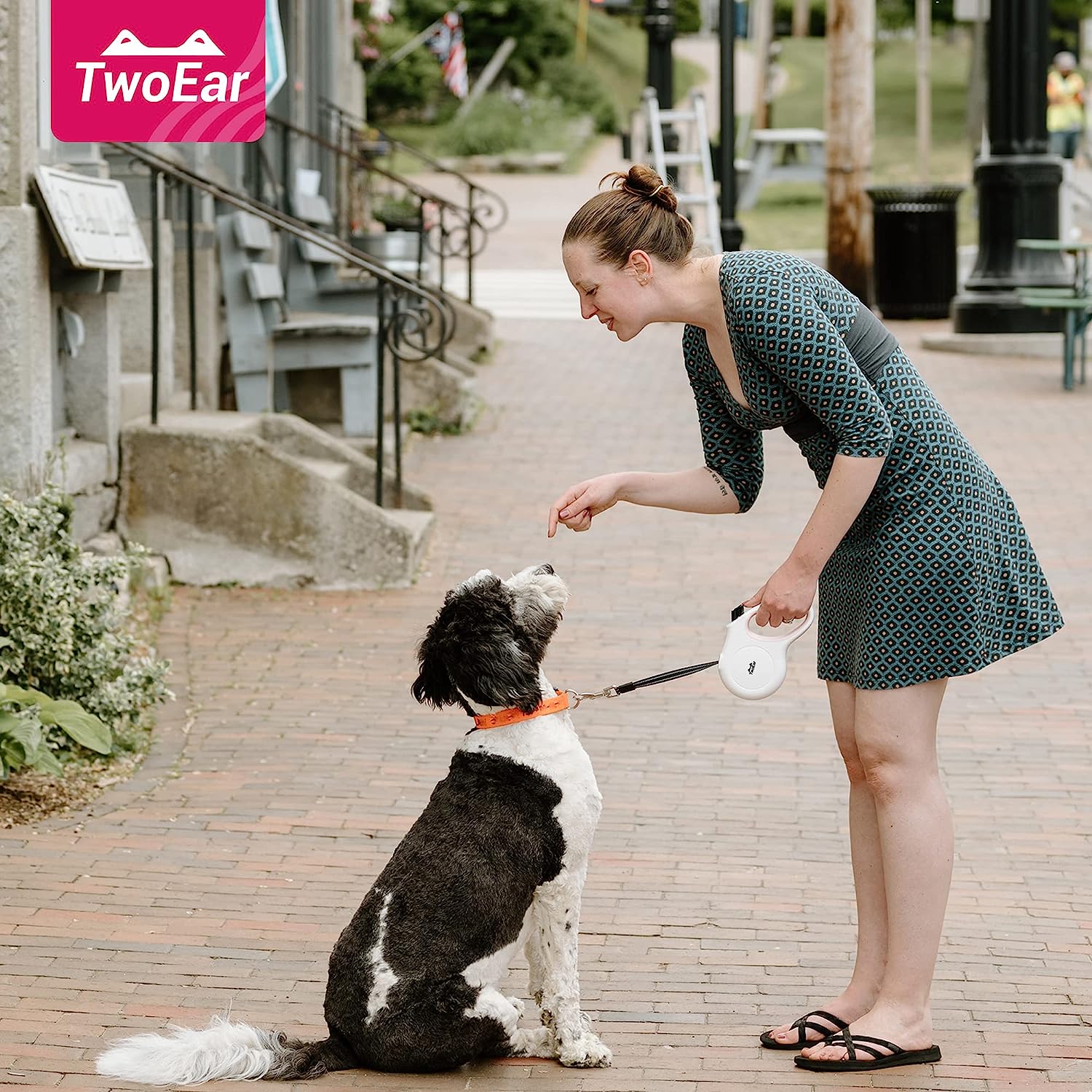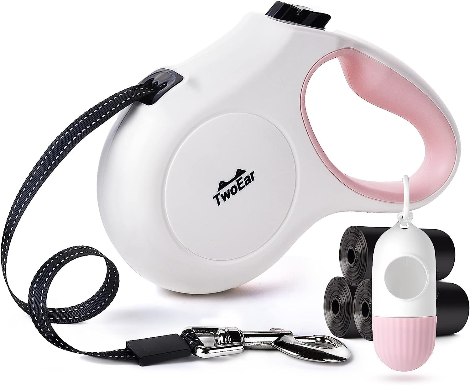TwoEar 5m Extendable Dog Lead with Dispenser and 60 Poop Bags for Small Dogs, Dog Leads Strong Retractable, Reflective Strong Nylon Pet Lead, Anti-Slip Handle, Tangle-Free (White).