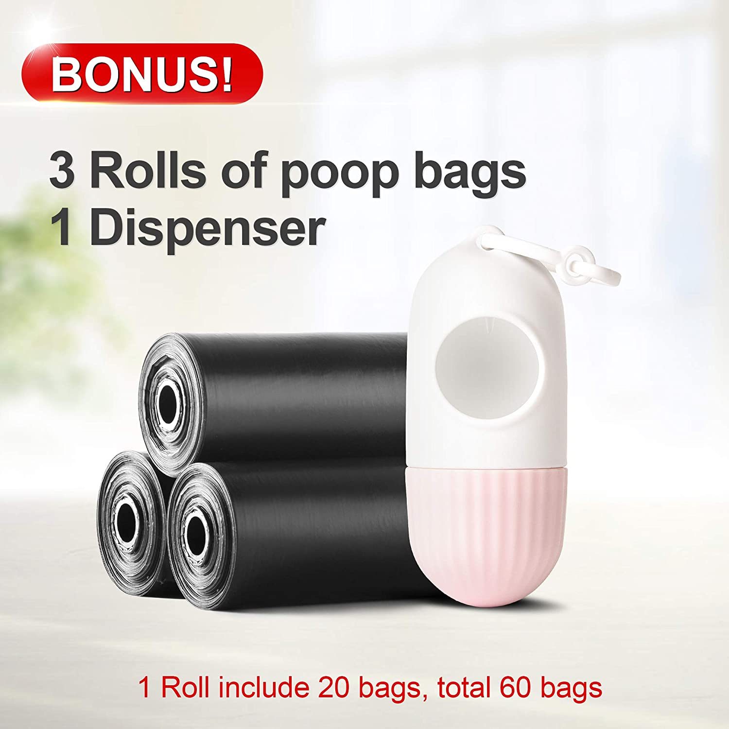5M Retractable Dog Lead Set Walking Leash for Small Dogs with Dispenser and 60 Poop Bags