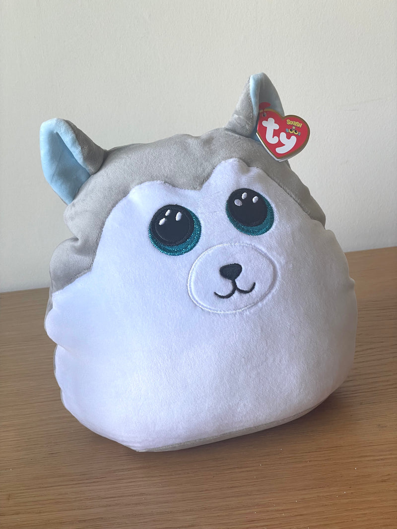 TY Slush HUSKY DOG SQUISH A BOO Soft Toy 10” Small Plush Cushion Pillow