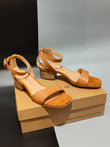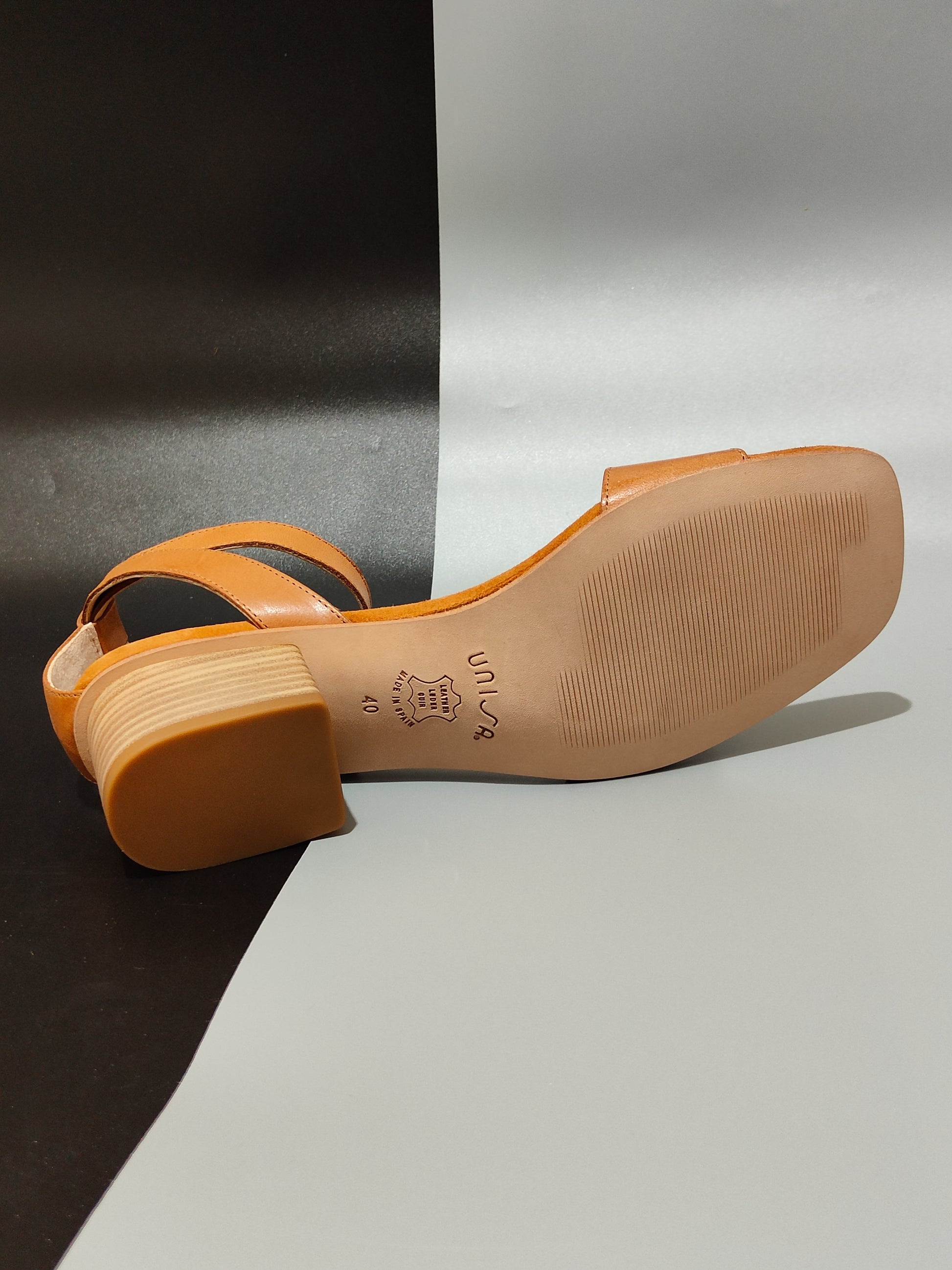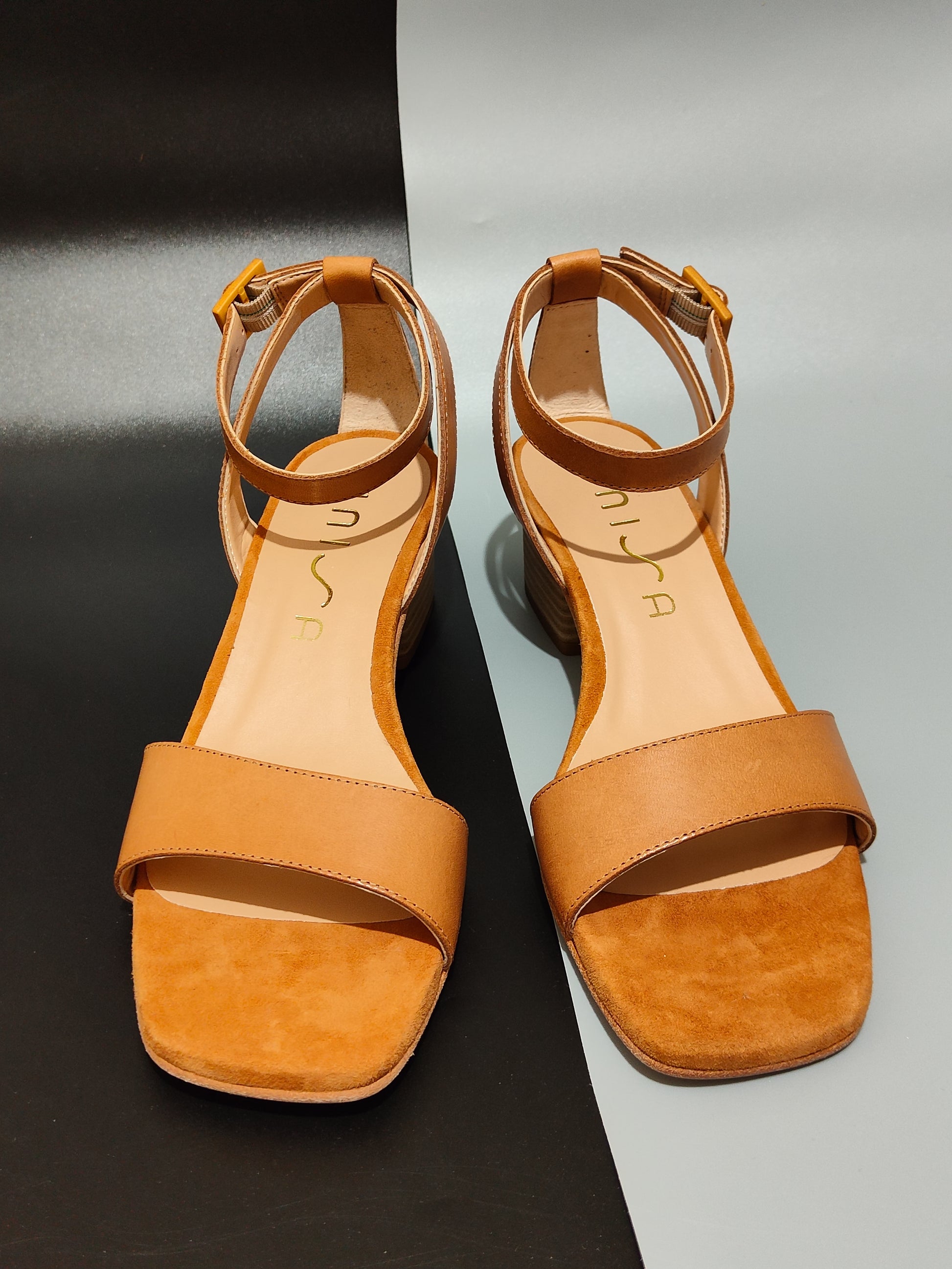 Leather sandals with ankle strap adjustable with buckle. Wide wooden effect 4,5 cm heel. Non-slip leather soles. Heel sandals, perfect to create your own personal style.
