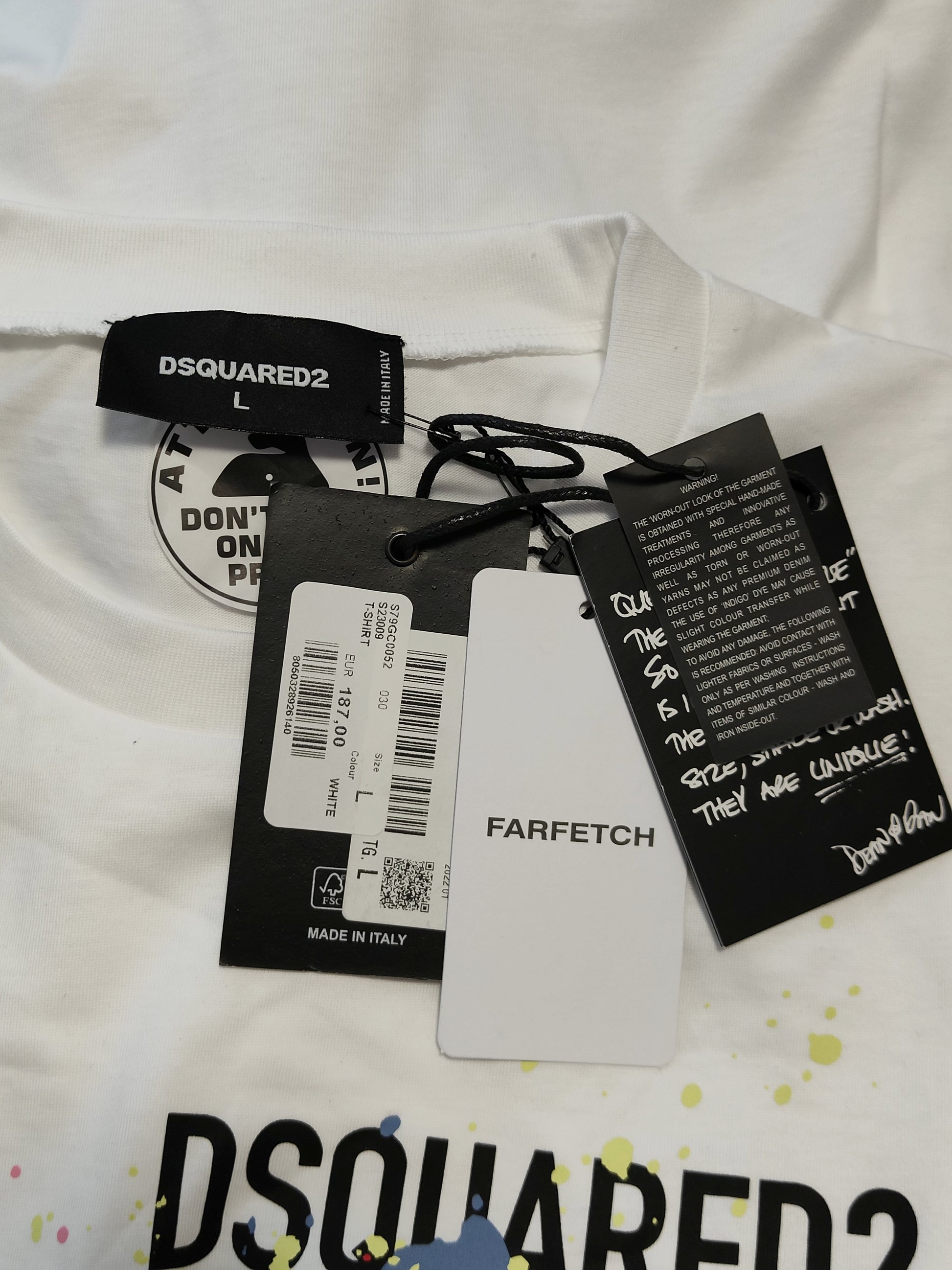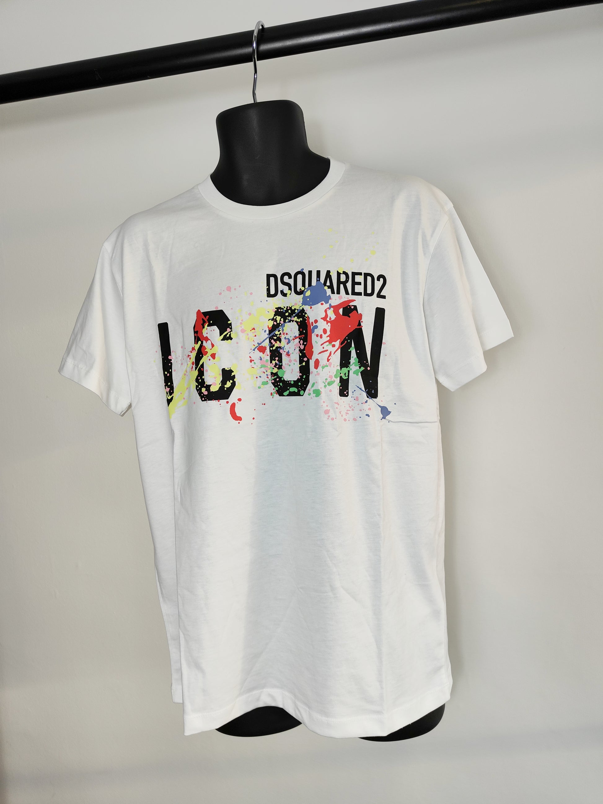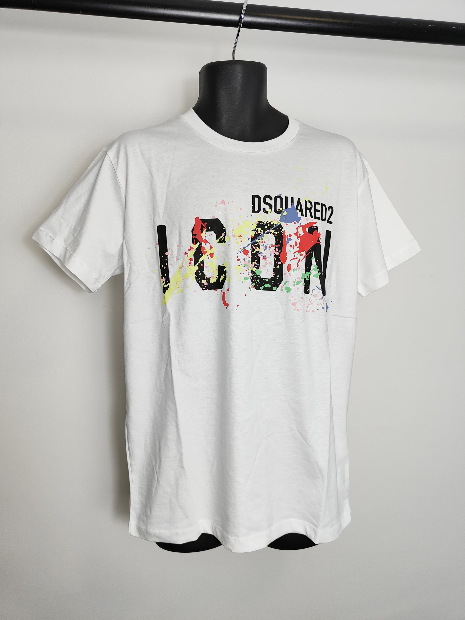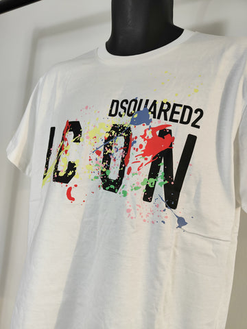 Add a luxurious and unique touch to your look with the Dsquared2 ICON Men's T-Shirt. This eye-catching t-shirt is crafted from soft cotton and adorned with a vibrant splash paint design, adding a distinctive and sophisticated flair to any outfit. Step out in style with this contemporary and stylish staple.