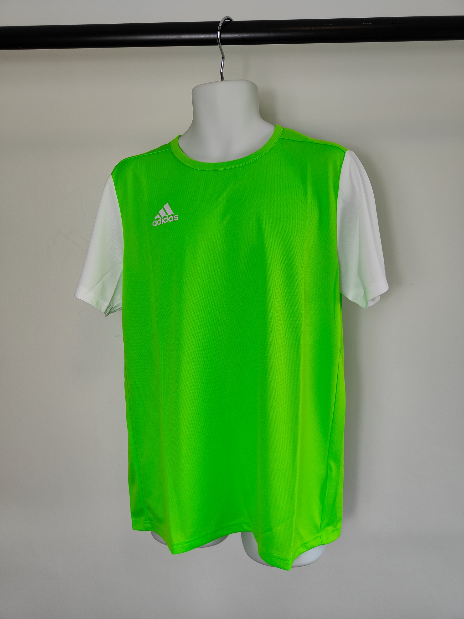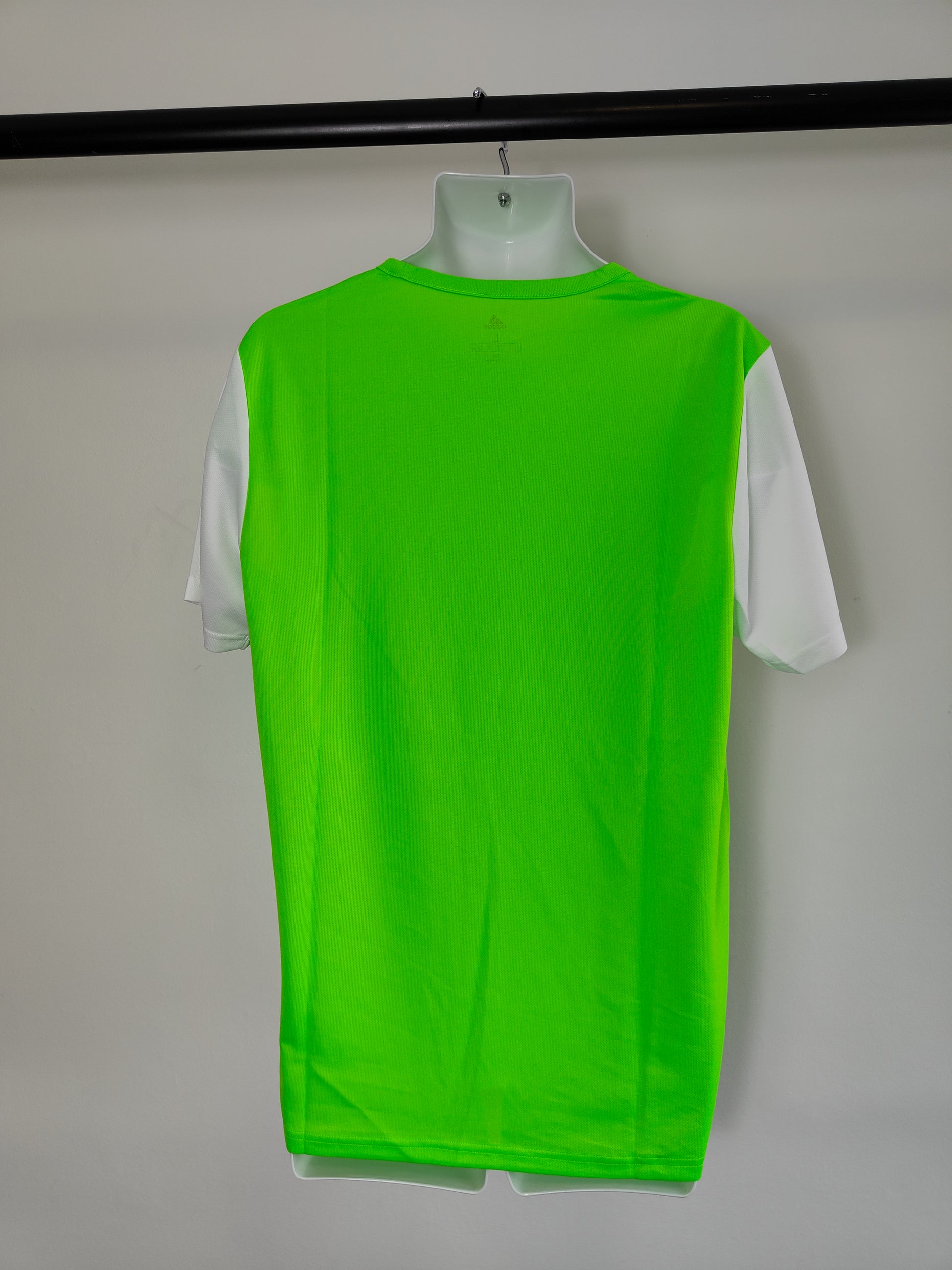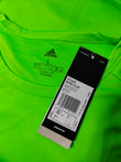 Stay stylish and comfortable while working out in this Adidas Men's Activewear T-Shirt. Constructed with durable fabric, this t-shirt promotes breathability and flexibility. The vibrant green color adds a pop of color to your wardrobe, making you stand out at the gym. (Gym rat's go-to)