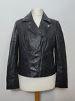 V By Very Women's Sheep Leather Biker Jacket Black 14