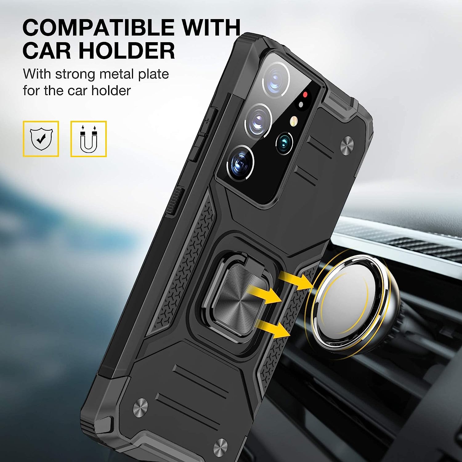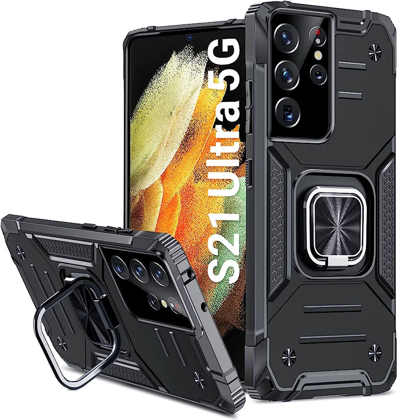 Samsung Galaxy S21 Ultra 5G Case - Shockproof, Heavy Duty, with Stand, Black