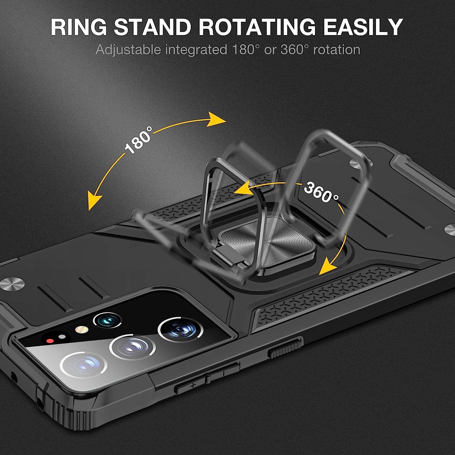 Vakoo for Samsung S21 Ultra Case, Samsung Galaxy S21 Ultra Case, Stand Series [Military Grade Protection] Heavy Duty Shockproof Protective Phone Case for Samsung Galaxy S21 Ultra 5G 6.8 inches, Black.